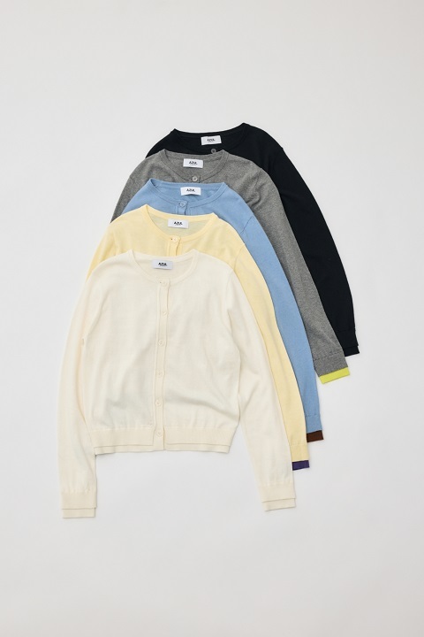 カシミヤ混素材の上品な風合いに、袖口と裾のフェイクレイヤードディテールがアクセントになったクルーネックカーディガン。 ​