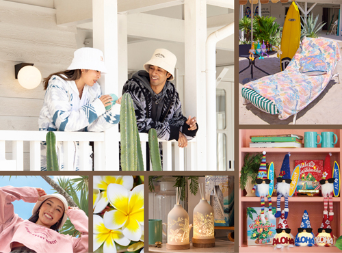 A wide range of Hawaiian goods from Japan and abroad are lined up in a small space.