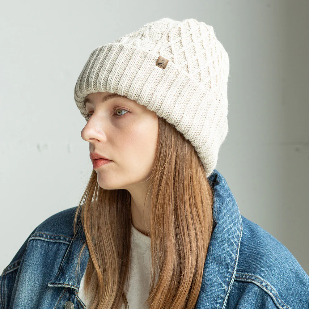 A stylish knit hat made from high-quality, soft Italian yarn.