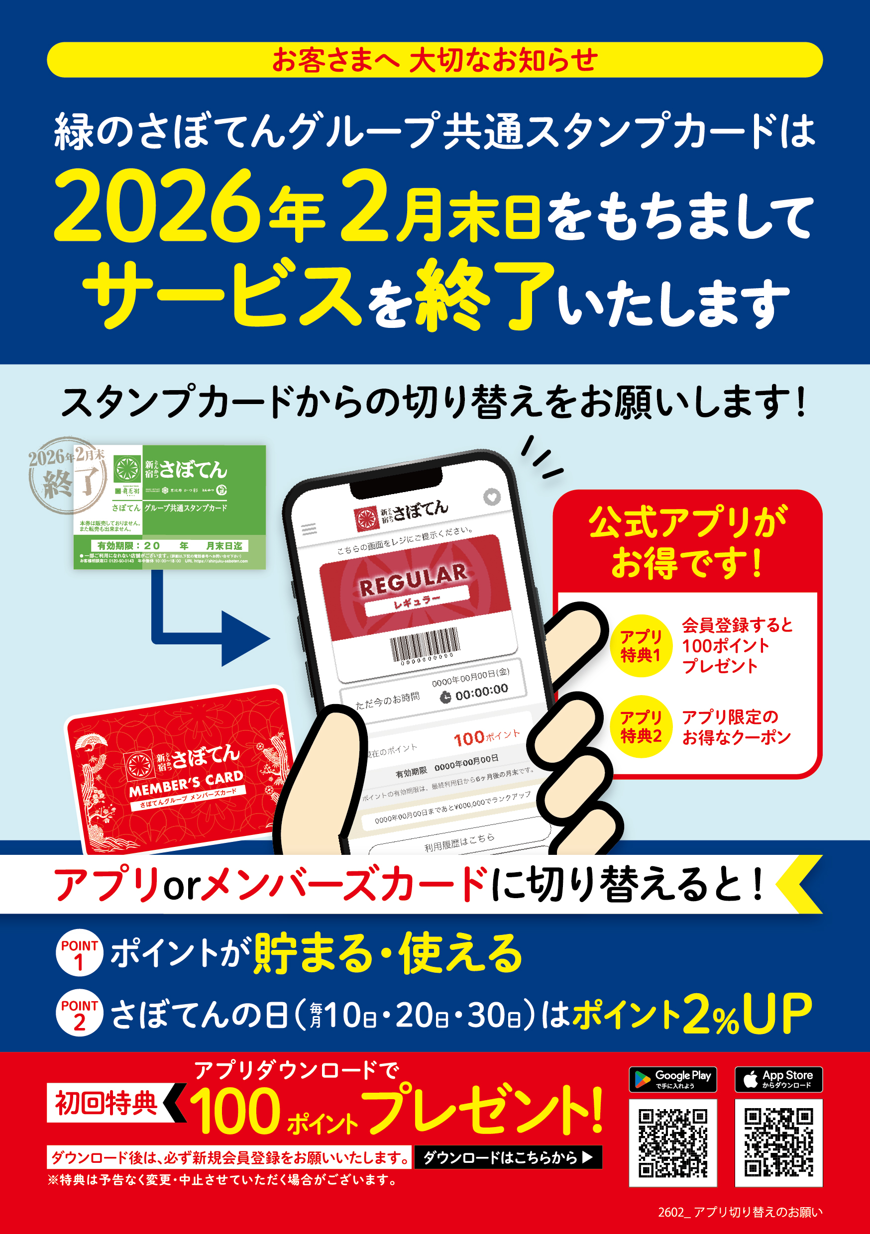 - Notice of termination of "Saboten Group Common Stamp Card" Services