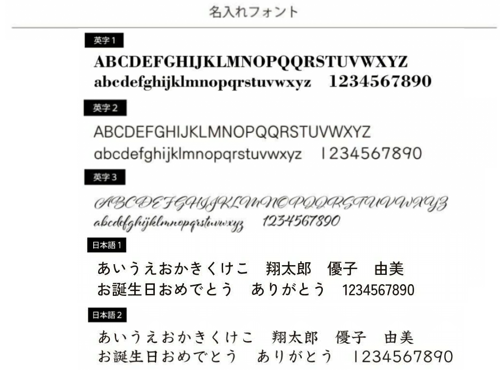 Name engraving fee: 550 yen per item