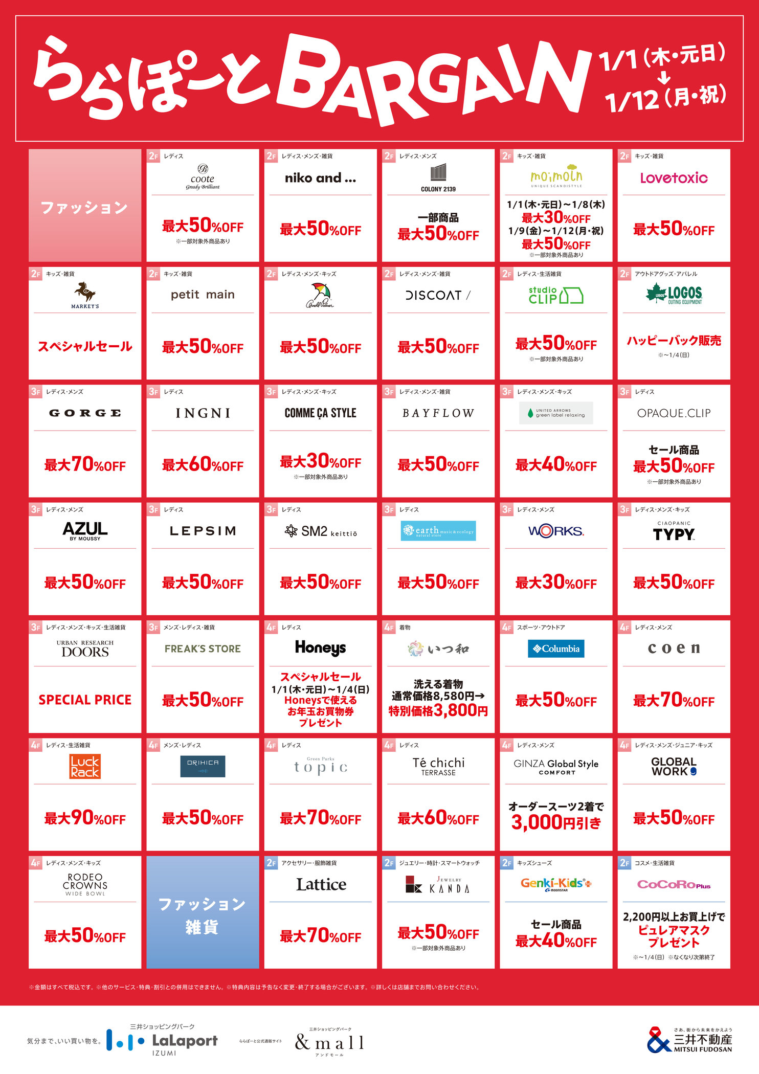 ららぽーと和泉にて最大90%のバーゲンを開催!