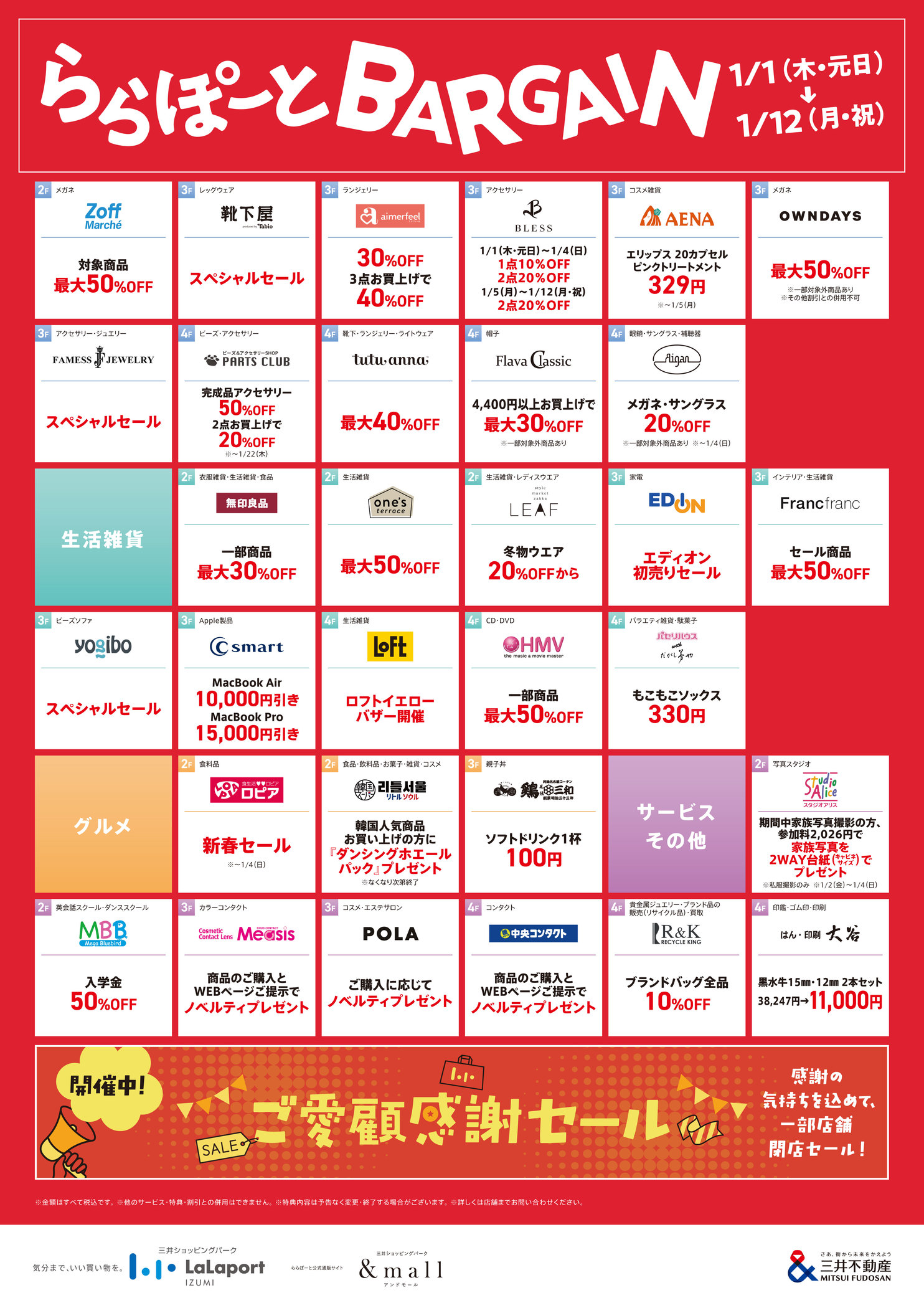 同時に、閉店を迎える店舗での「ご愛顧感謝セール」も1/12(月・祝)まで開催いたしております。