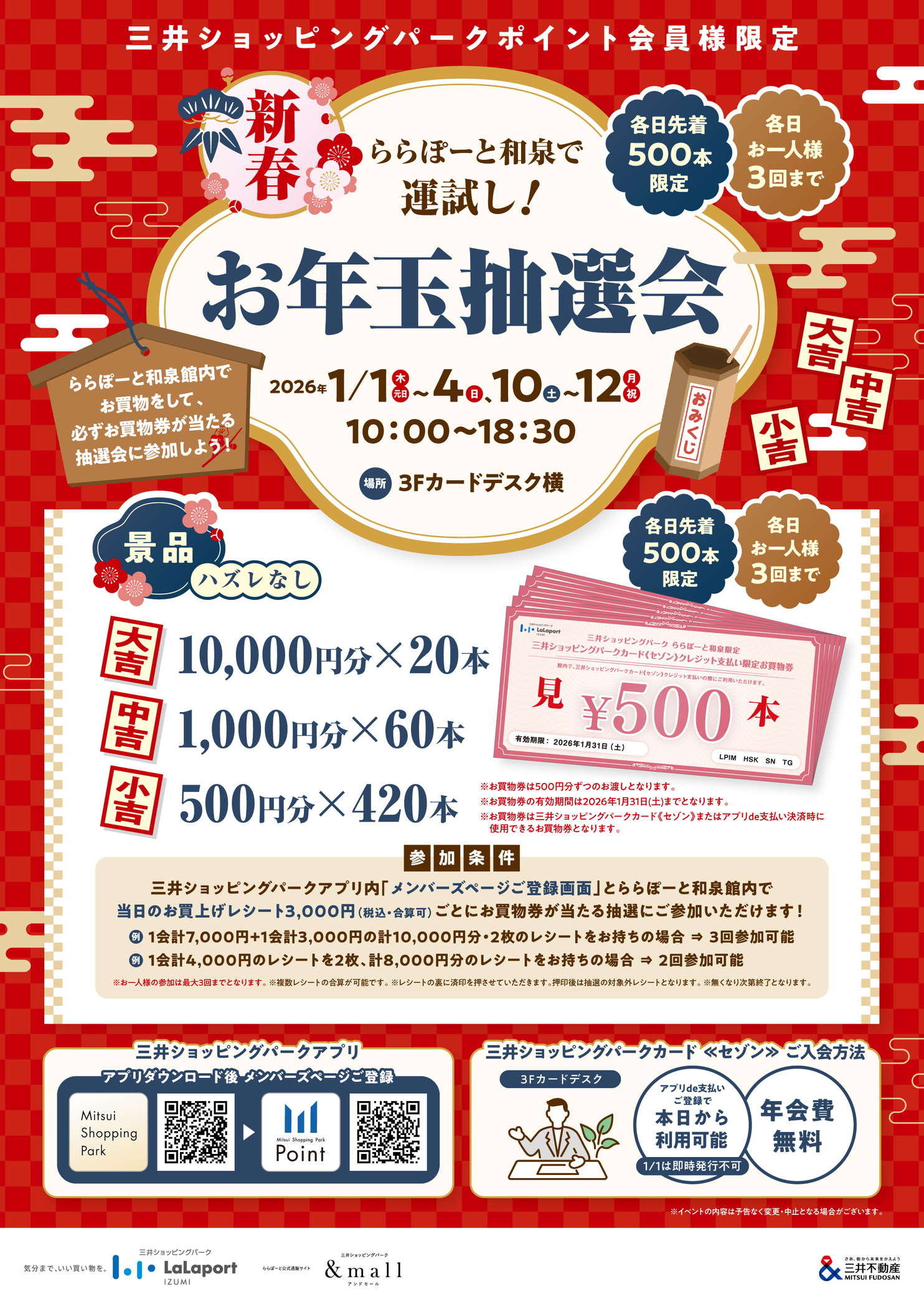 *Mitsui Shopping Park Cards (Saison) cannot be issued immediately on January 1st (Thursday, New Year's Day).