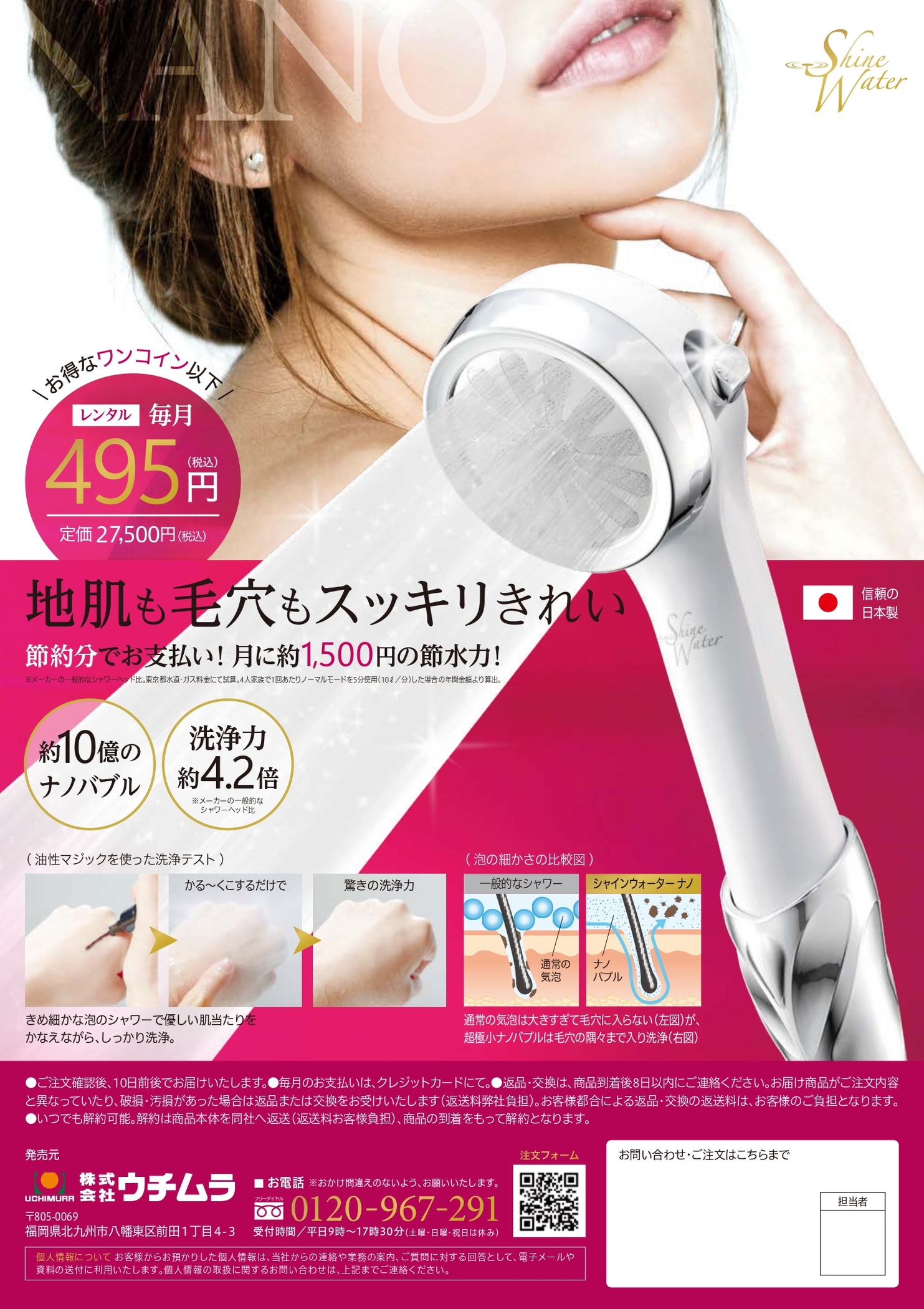 You can use the luxury nano bubble shower, which normally costs 27,500 yen, for just 495 yen per month.
