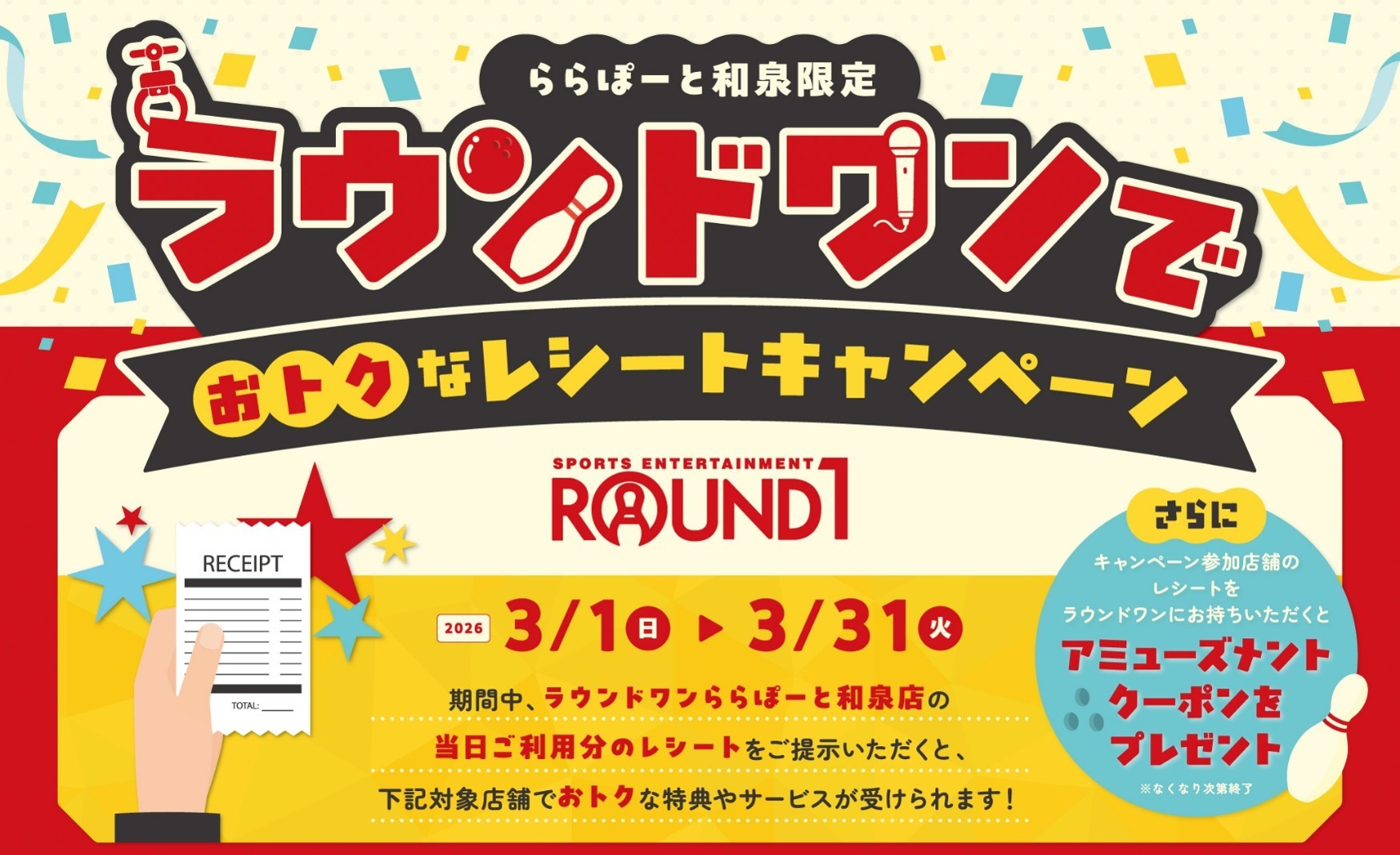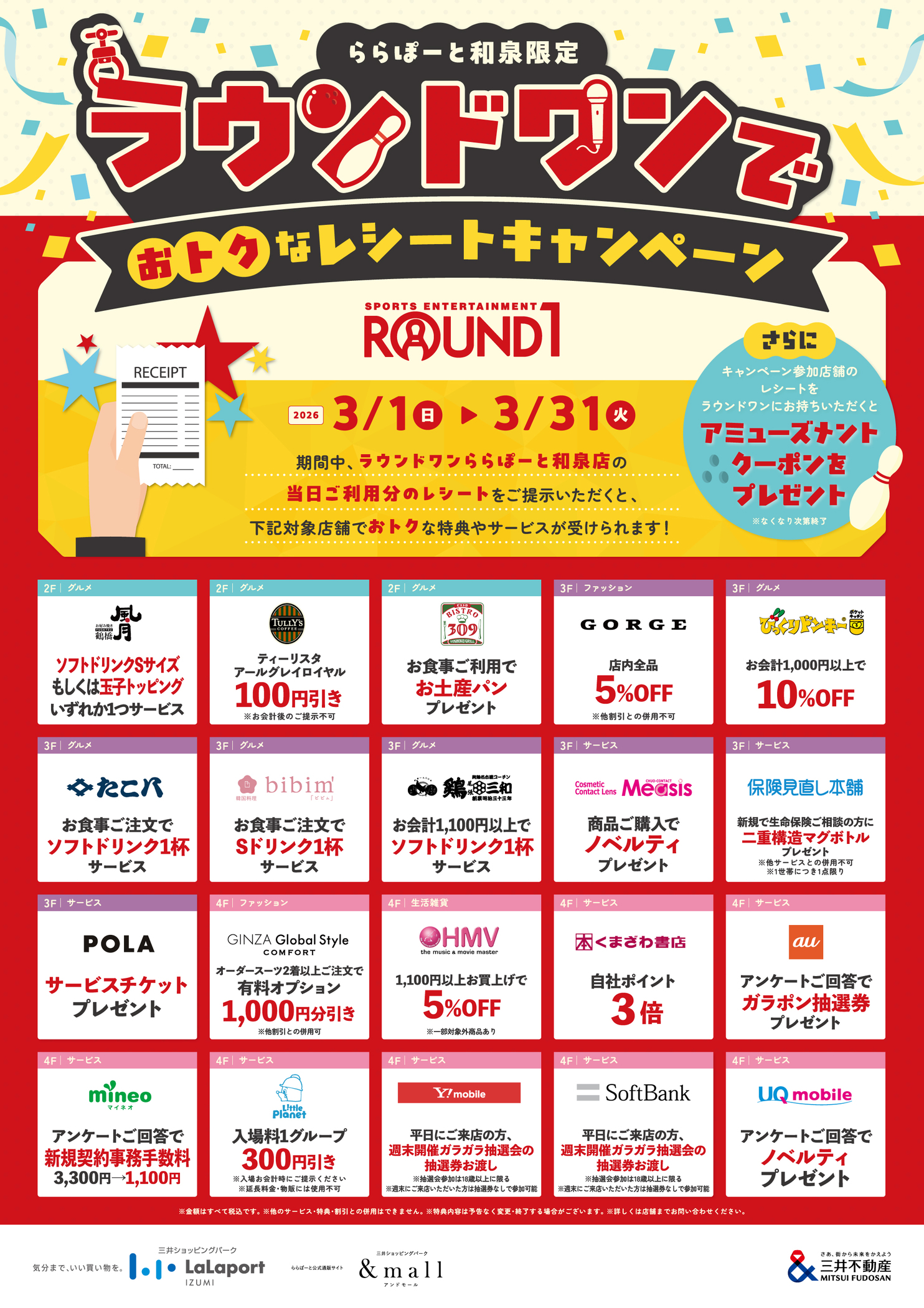 - Exclusive LaLaport IZUMI! Great receipt campaign at Round 1!