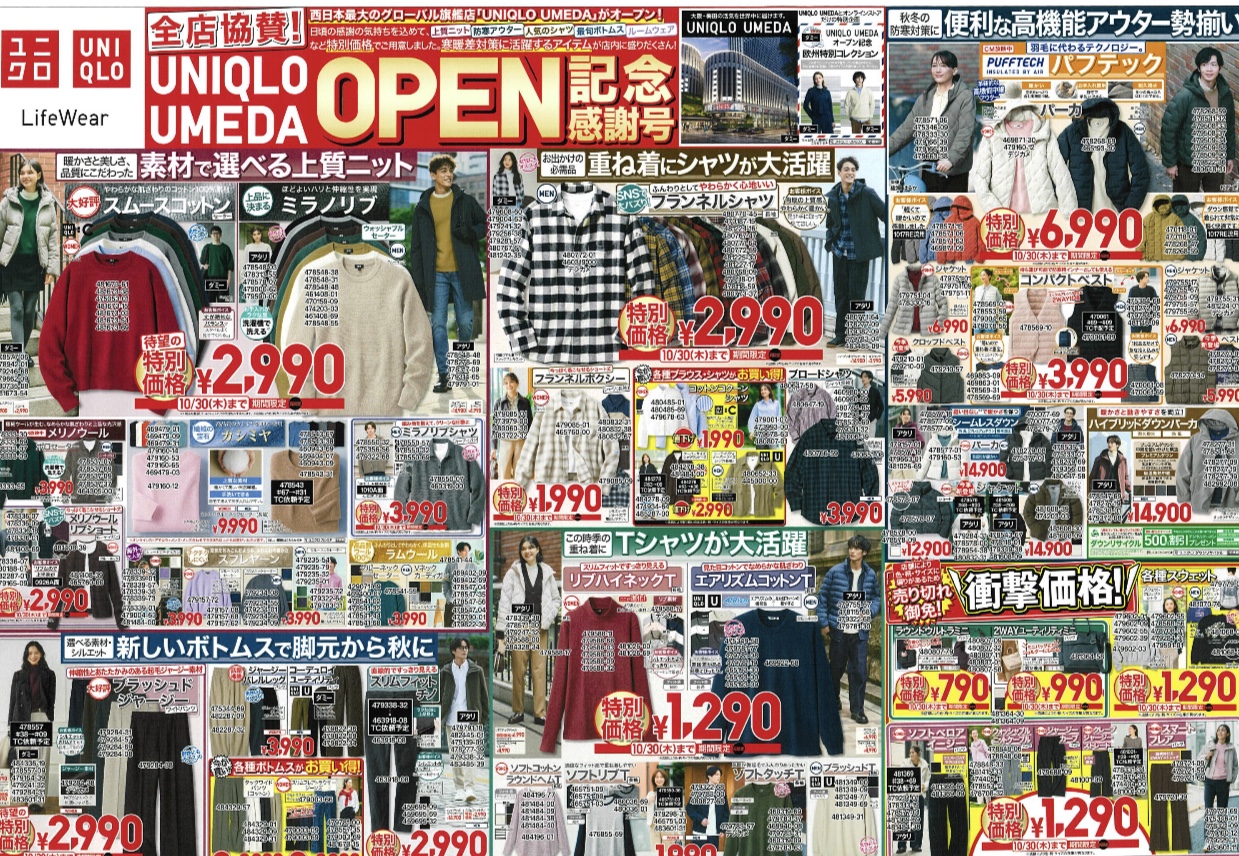 UNIQLO UMEDA Grand Opening Celebration! Popular Fall/Winter items on sale!!