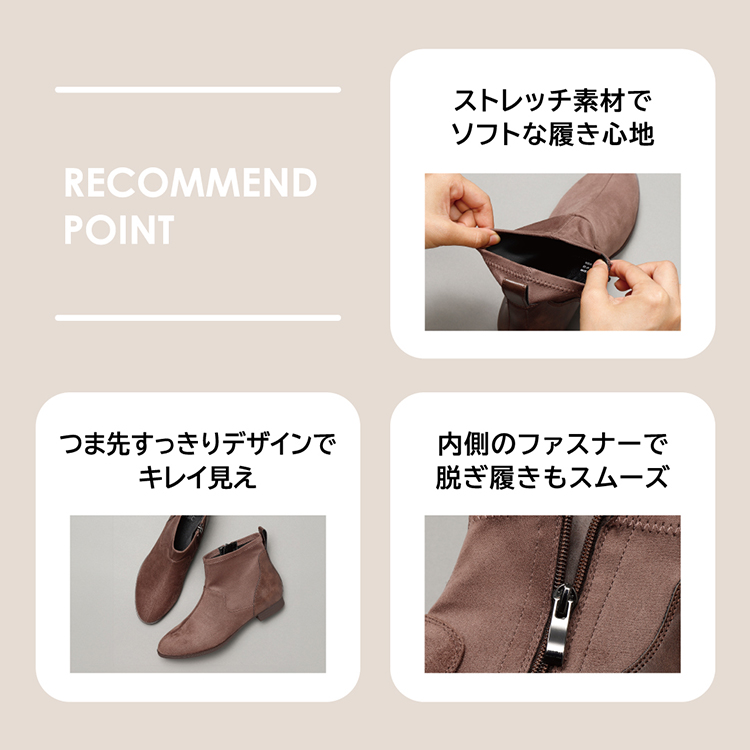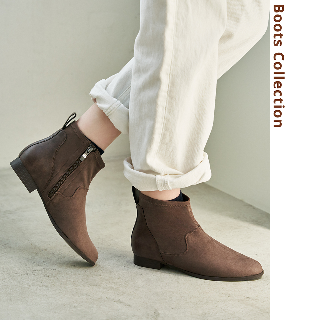 The contrast between suede-like and smooth material at the heel is perfect for autumn and winter, and the different looks at the front and back are also appealing.