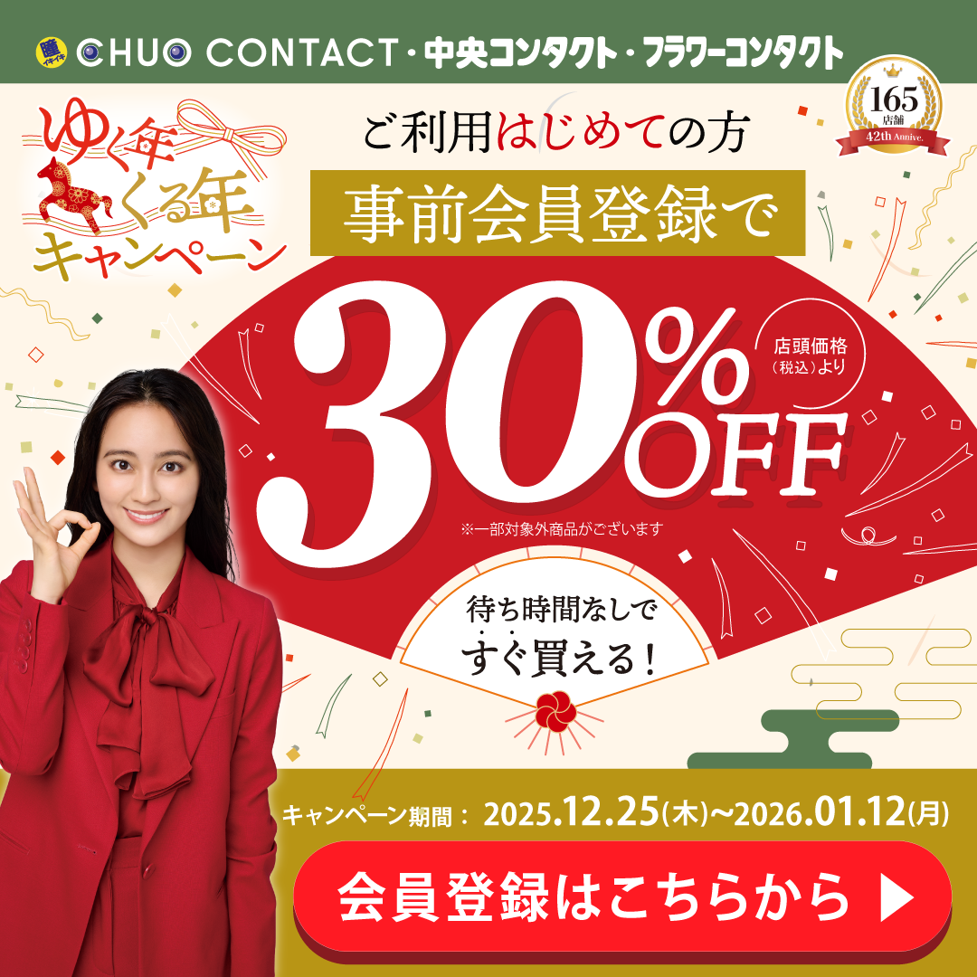 中央コンタクトのご利用が初めてのお客様限定で事前にLINEで会員登録していただきますと対象のコンタクトレンズをご購入で30%OFFとなるお得なクーポンを配信中!!