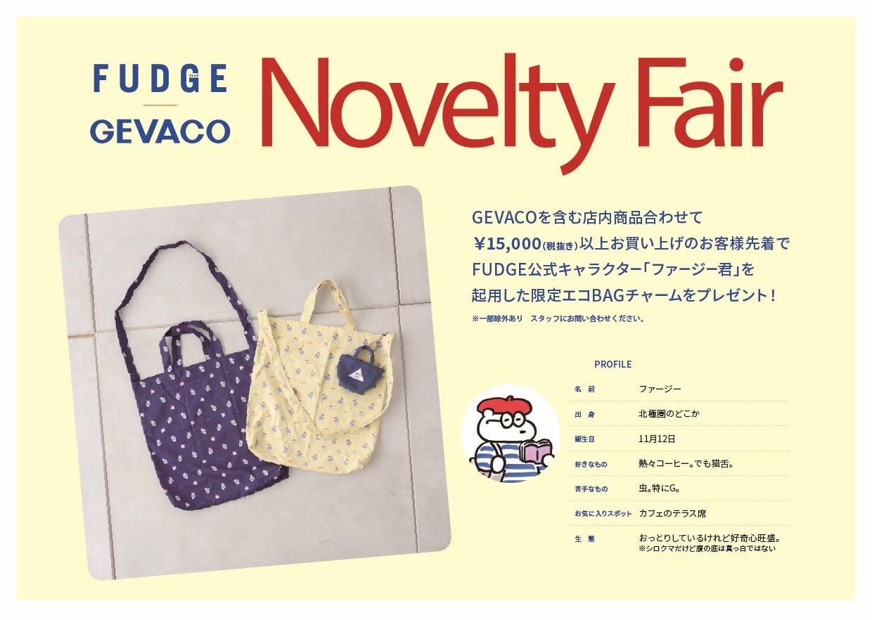 期間中、【FUDGE×GEVACO】3/14~ノベルティフェアを開催!