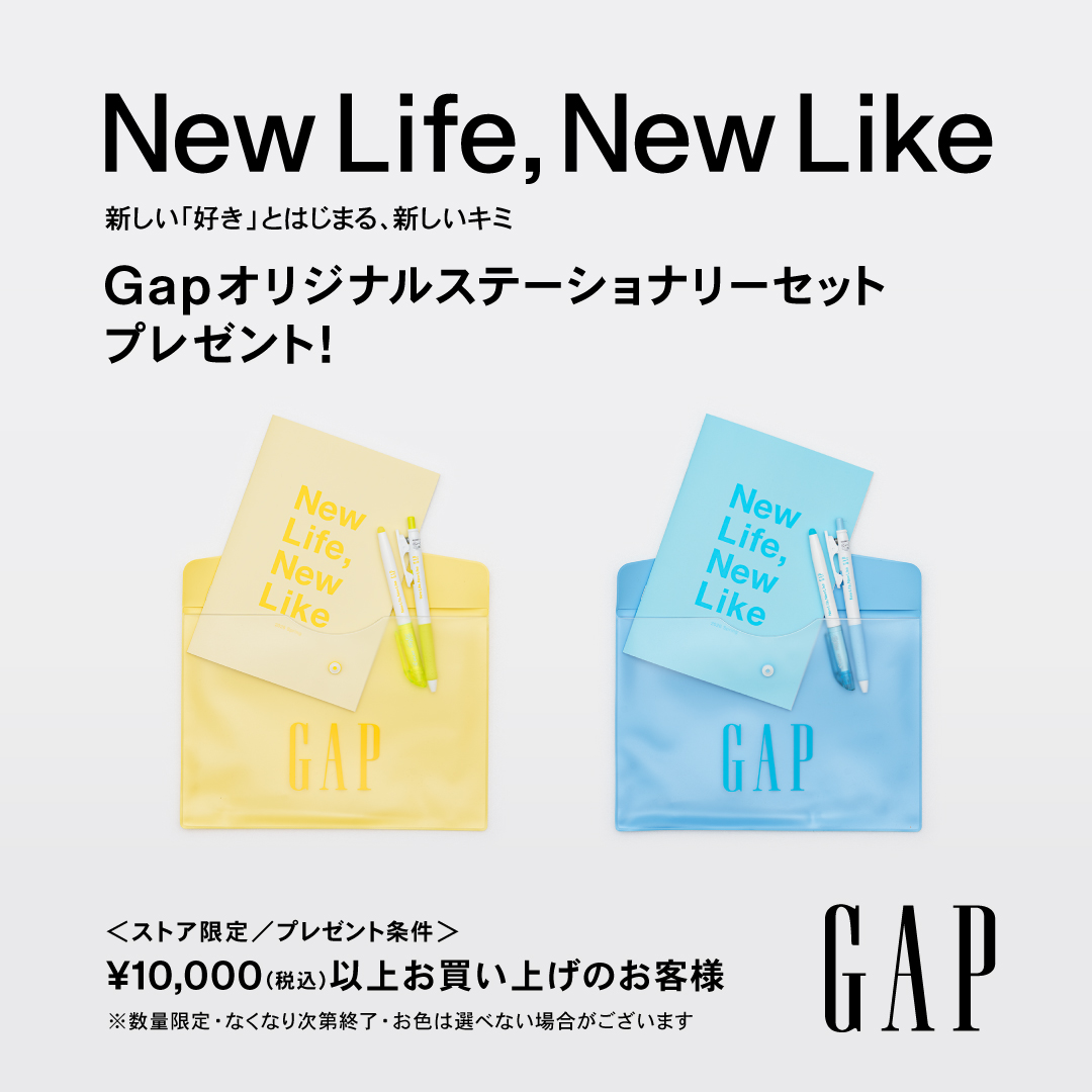 3/20(金)-3/29(日)まで10,000円以上お買い上げのお客様に『Gapオリジナルステーショナリーセット』をプレゼント。