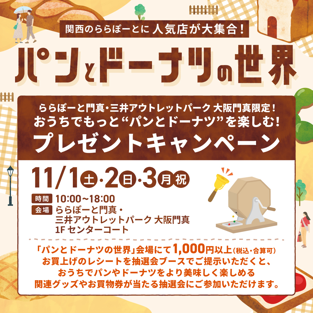 *Receipts from November 1st (Sat) to 3rd (Mon, holiday) during the "World of Bread and Donuts" event are eligible.