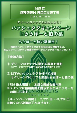 Support the NEC Green Rockets Tokatsu! Hashtag Campaign at LaLaport KASHIWANOHA