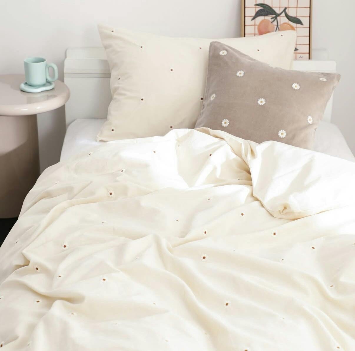 Introducing our cute bed linen featuring plump, three-dimensional daisy motif embroidery!