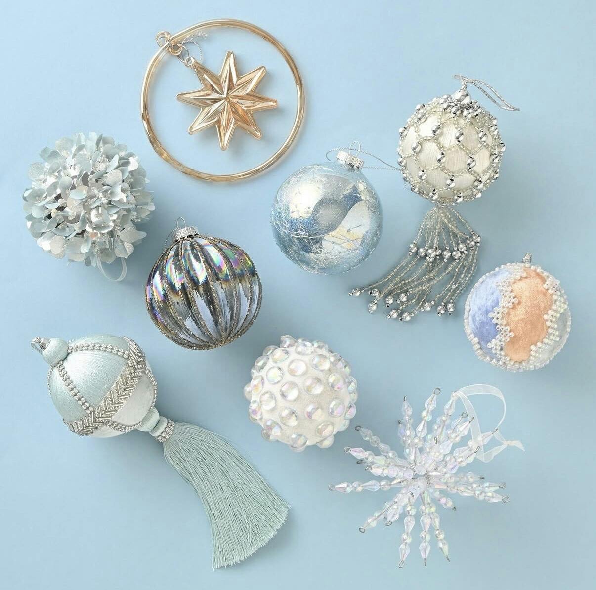 We have a variety of ornaments in different materials and shapes, including glass ornaments with unique designs!