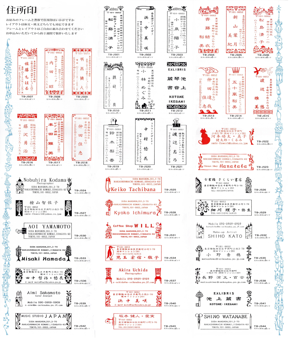 Address stamps and name stamps designed by artist Fumiaki Tada