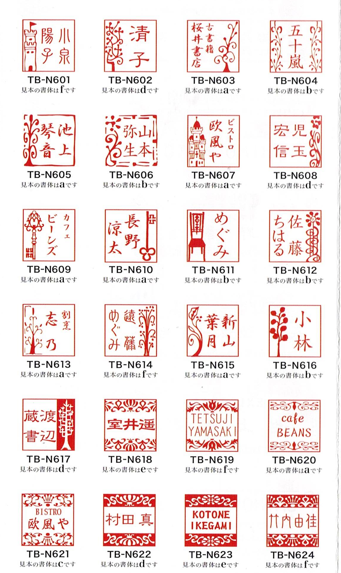 - Address stamps and name stamps designed by artist Fumiaki Tada