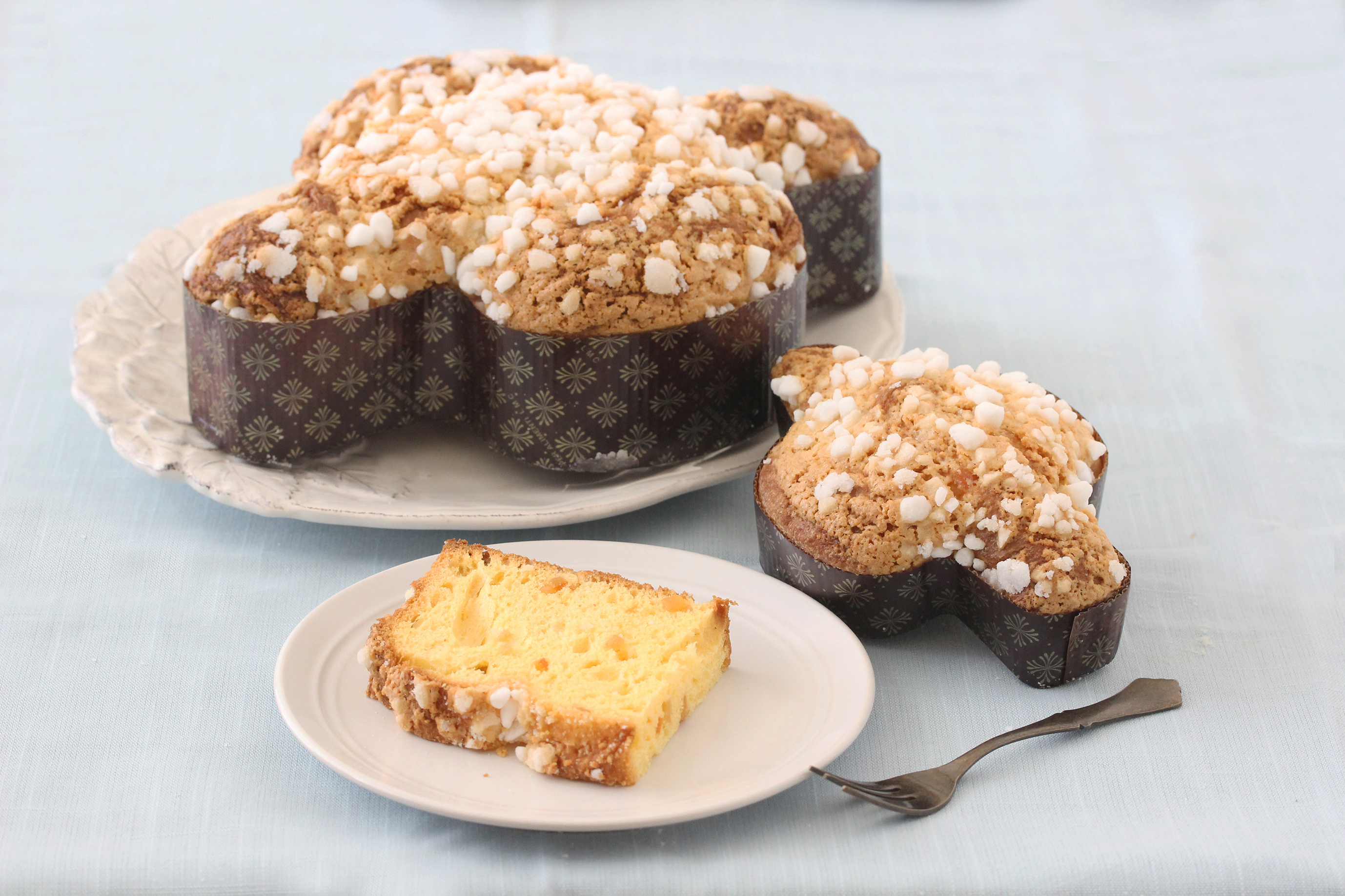 Colomba is a traditional fermented confection. "Colomba" means "dove" in Italian, and the white dove is