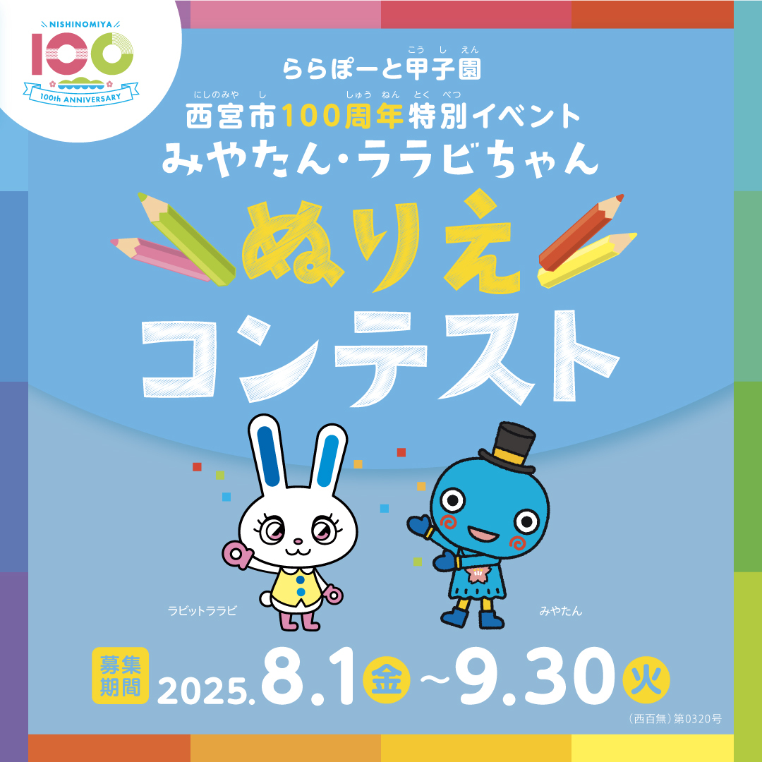 - [Nishinomiya City 100th Anniversary Special Event] Miyatan and LaLaBi-chan Coloring Contest!