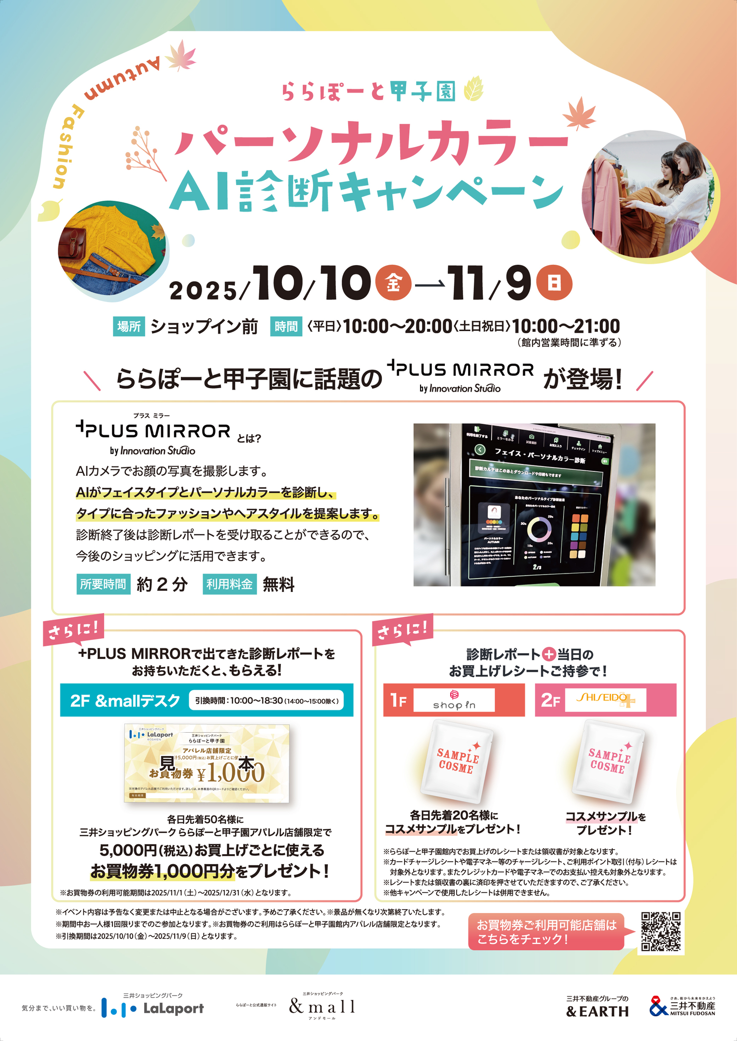 Exclusively available at LaLaport KOSHIEN apparel stores: Receive a 1,000 yen shopping voucher for every purchase of 5,000 yen (tax included)!