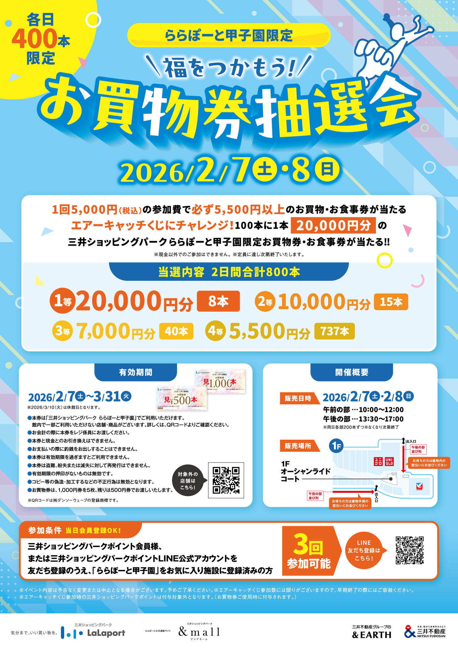 ・Mitsui Shopping Park Point members or those who have registered as friends on the official Mitsui Shopping Park Point LINE account... 3 times You can participate!