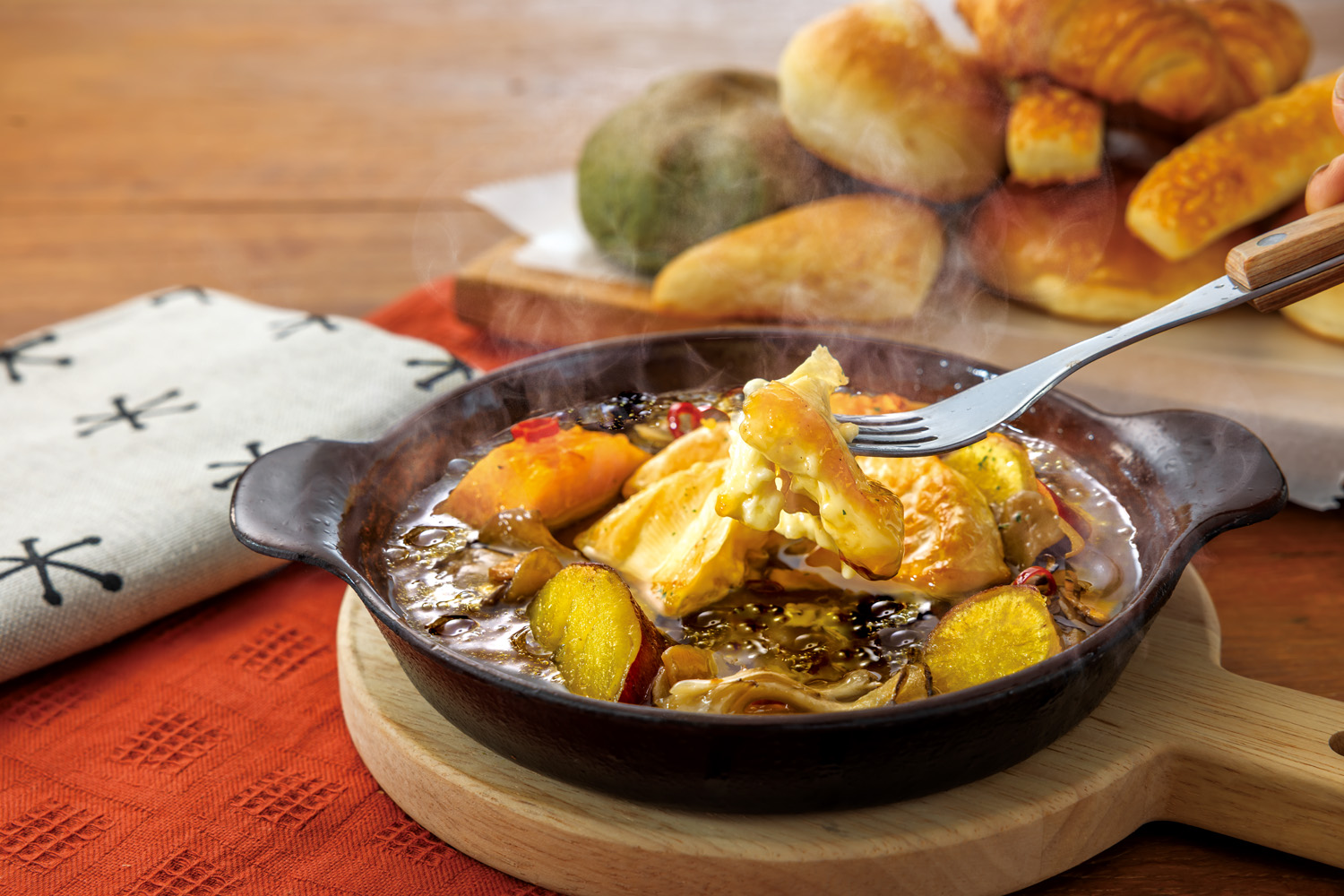 We recommend eating melted Camembert cheese with sweet potatoes or pumpkin.