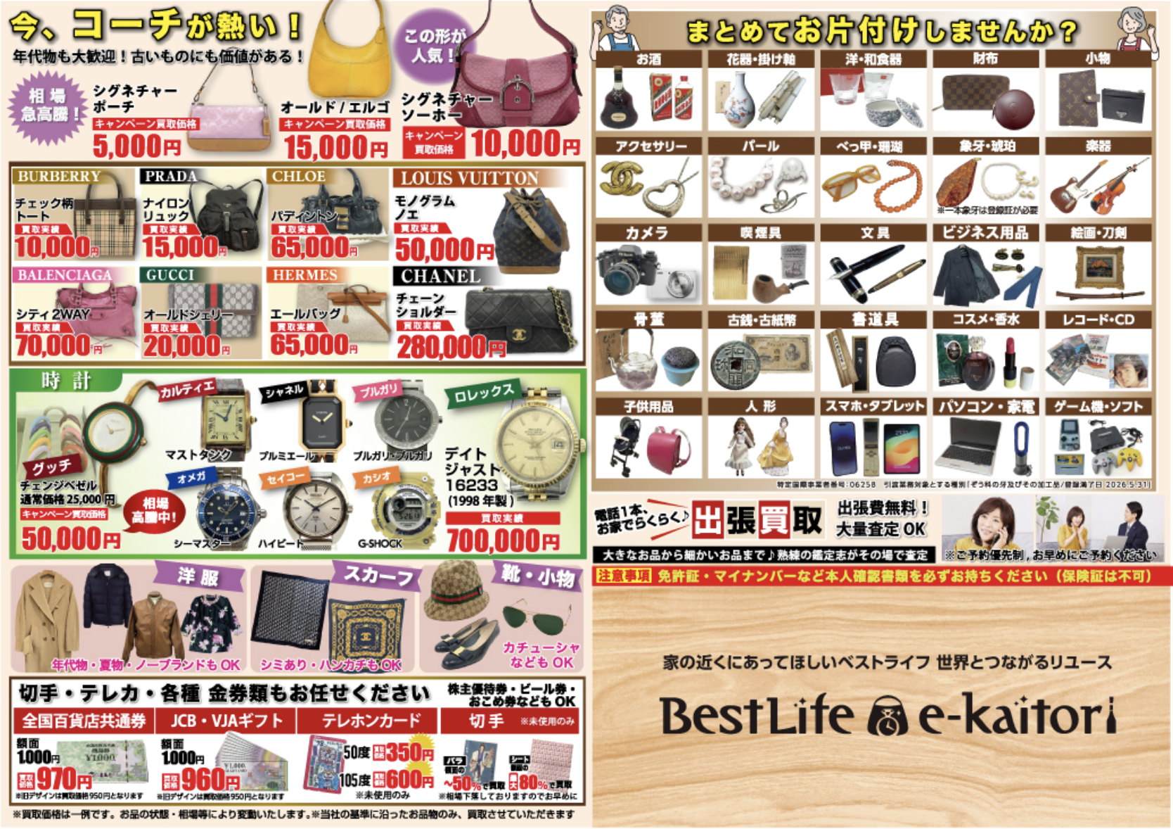 Brand bags, precious metals, jewelry, kimonos