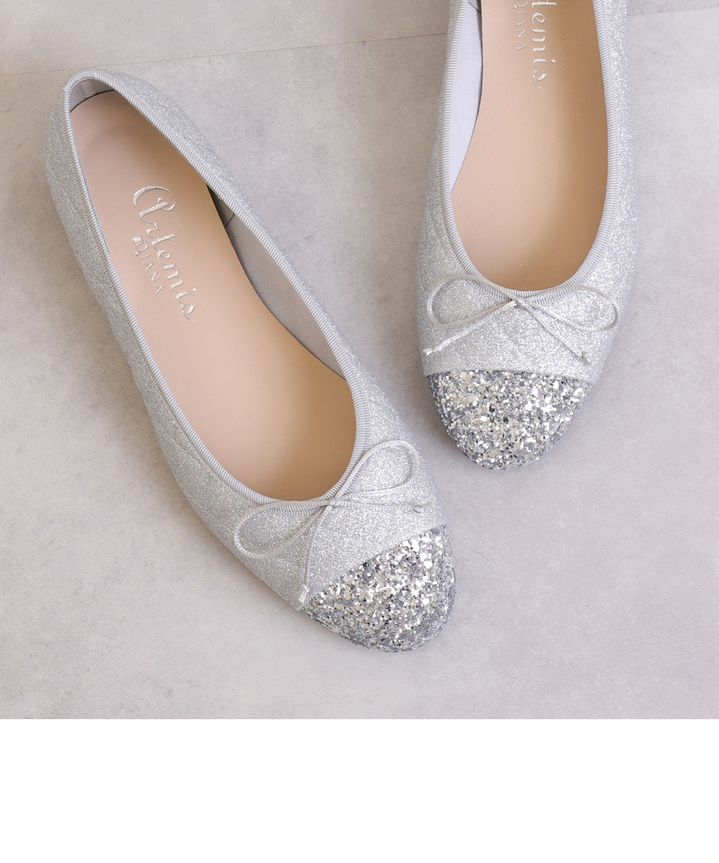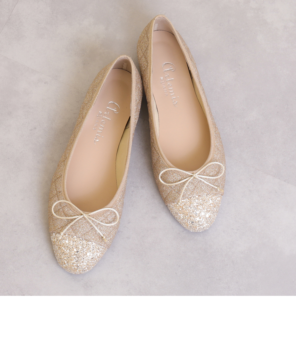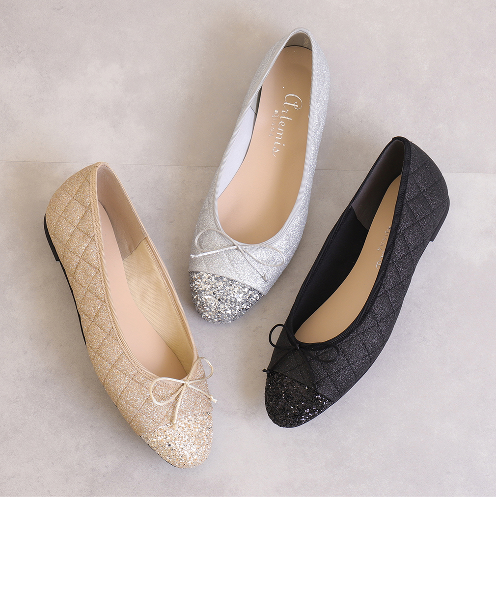 These ballet shoes are gorgeous, made from an original material quilted with glitter and large glitter in the same color.