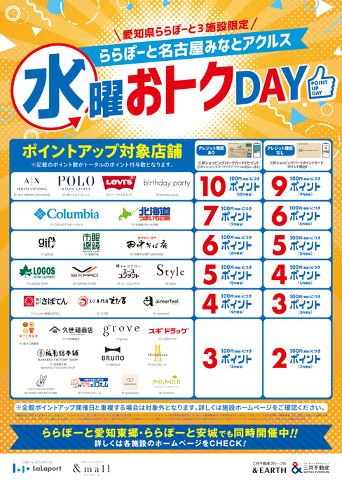 <Held every Wednesday! Wednesday Bargain Day>Mitsui Shopping Park Points Up Day available at participating stores only