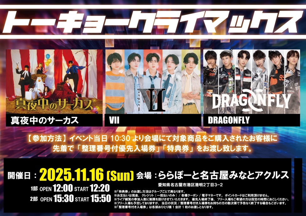 11/16(日) トーキョークライマックス ららぽーと名古屋みなとアクルス開催のお知らせ
