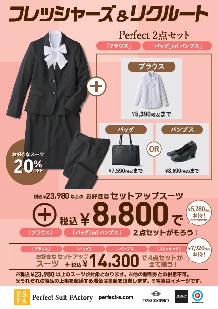 New students and new employees will receive a 20% discount on suits (both Men's and Men's) selected.
