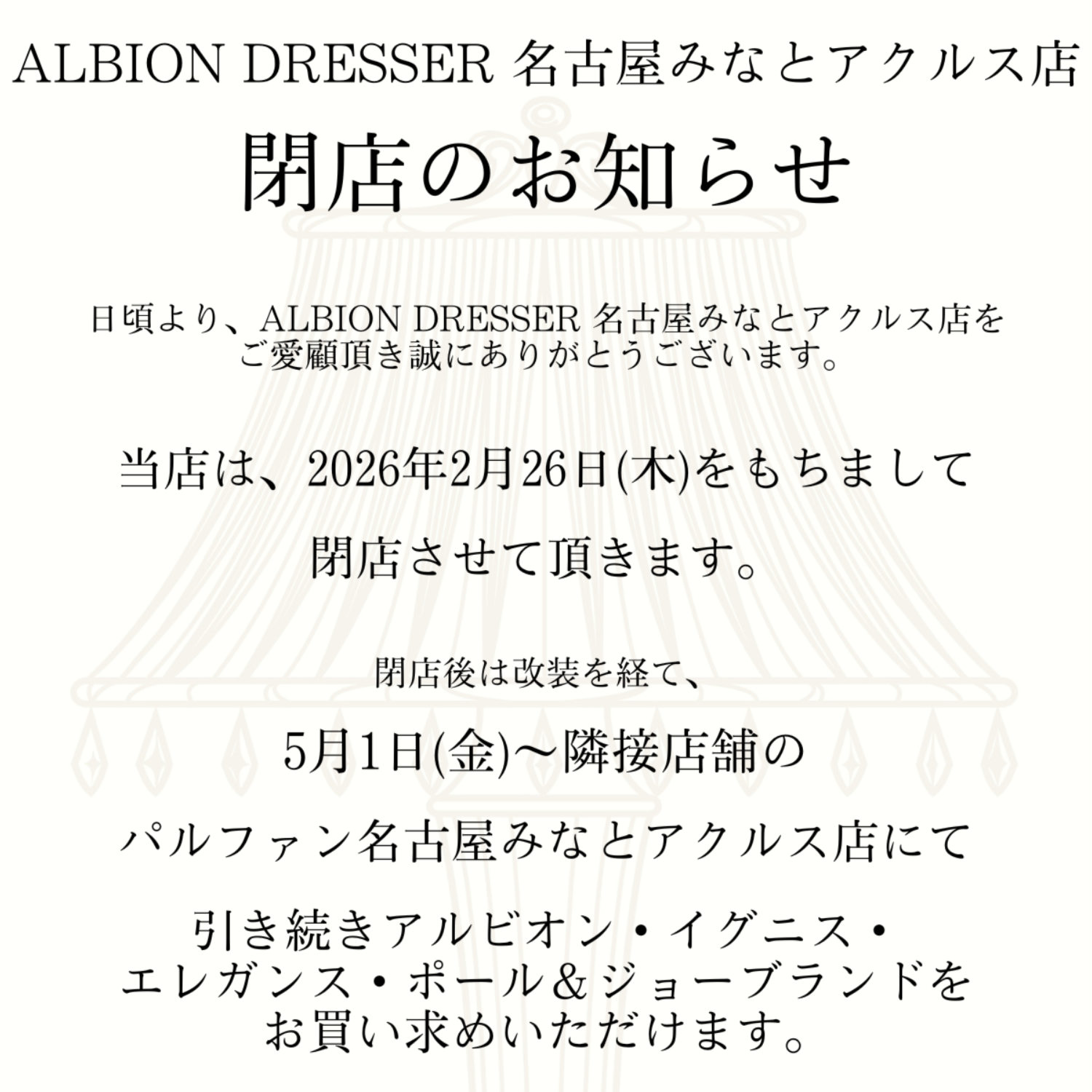 Thank you for visiting ALBION DRESSER Nagoya Minato Akursu store.