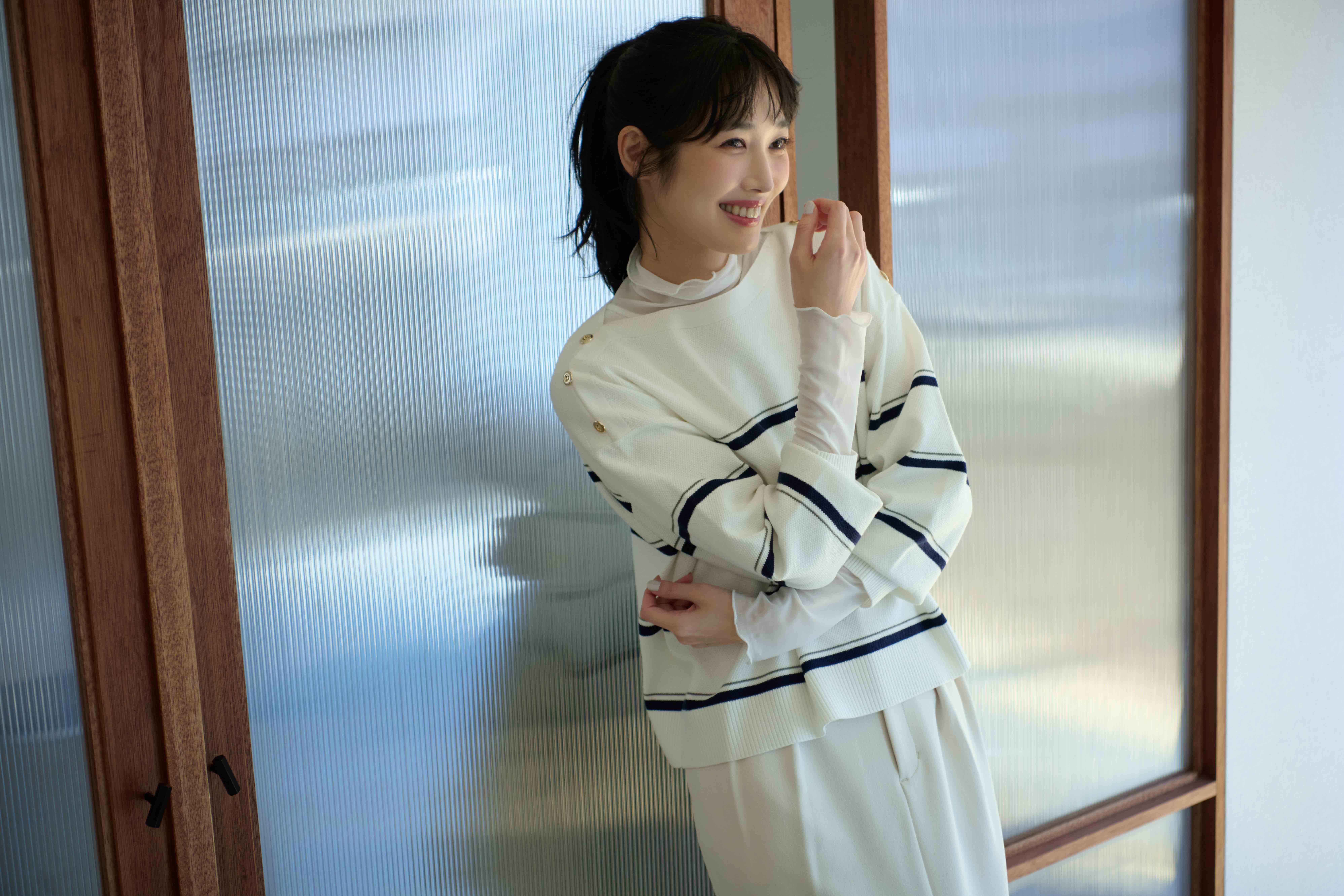 - [Washable at home] Boat neck knit that keeps your face looking neat