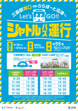 Shuttle bus service from Mishima Station South Exit to LaLaport NUMAZU! Announcement!
