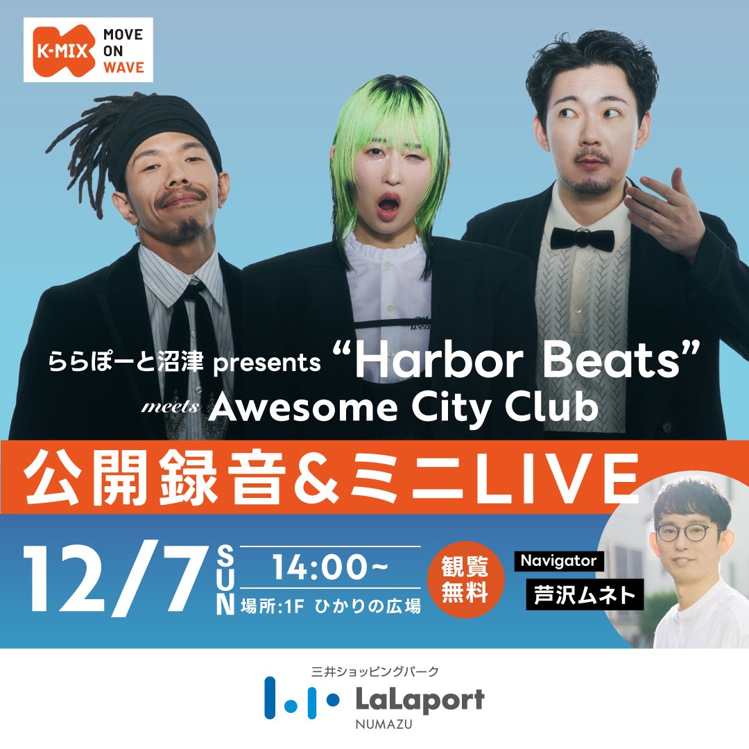 さらに!イベントの模様は、特別番組「ららぽーと沼津 presents "Harbor Beats" meets Awesome City Club!」にて後日放送予定。