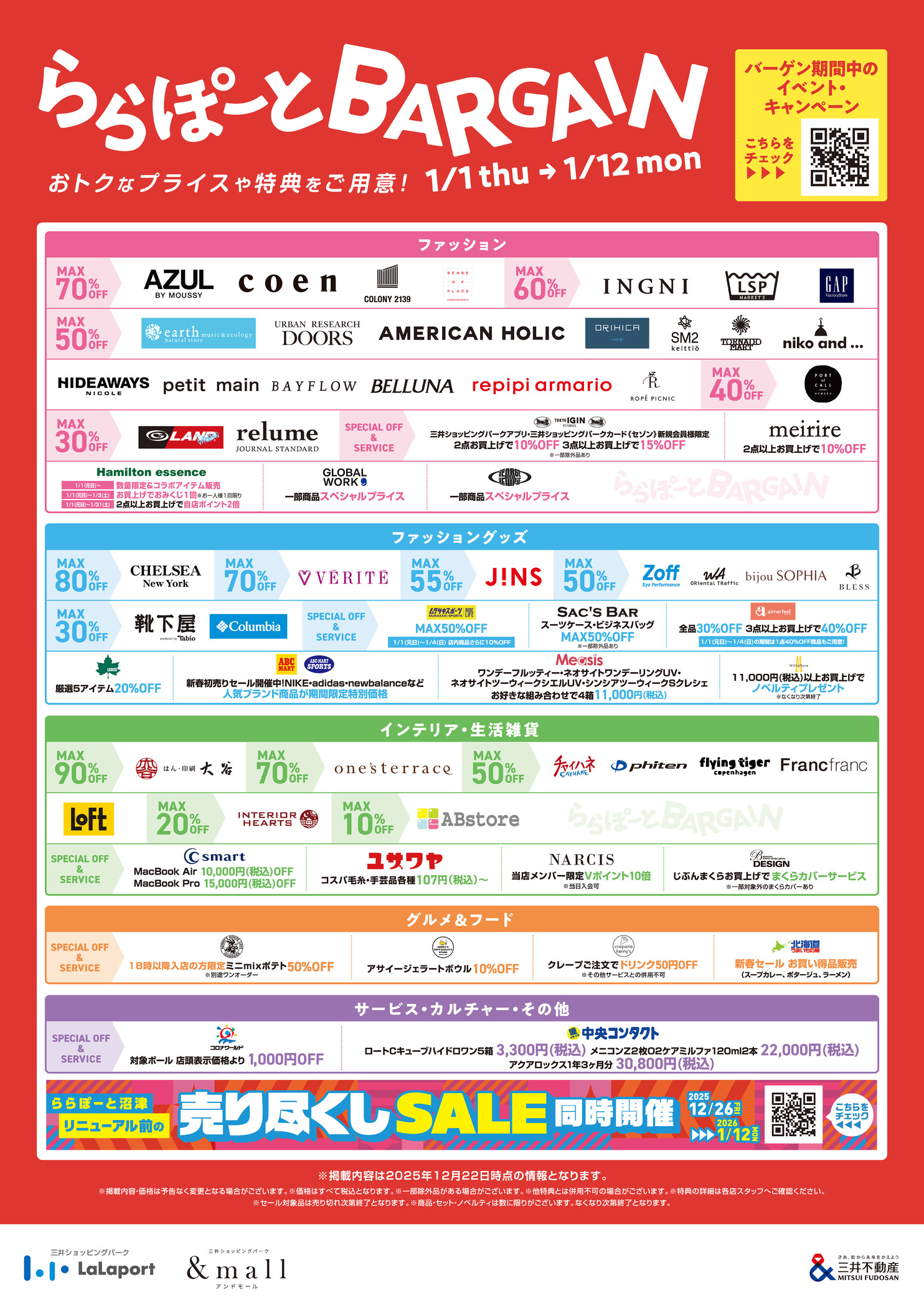 LaLaport BARGAIN will be held from January 1st, 2026 (New Year's Day) to January 12th (Monday, national holiday)!!