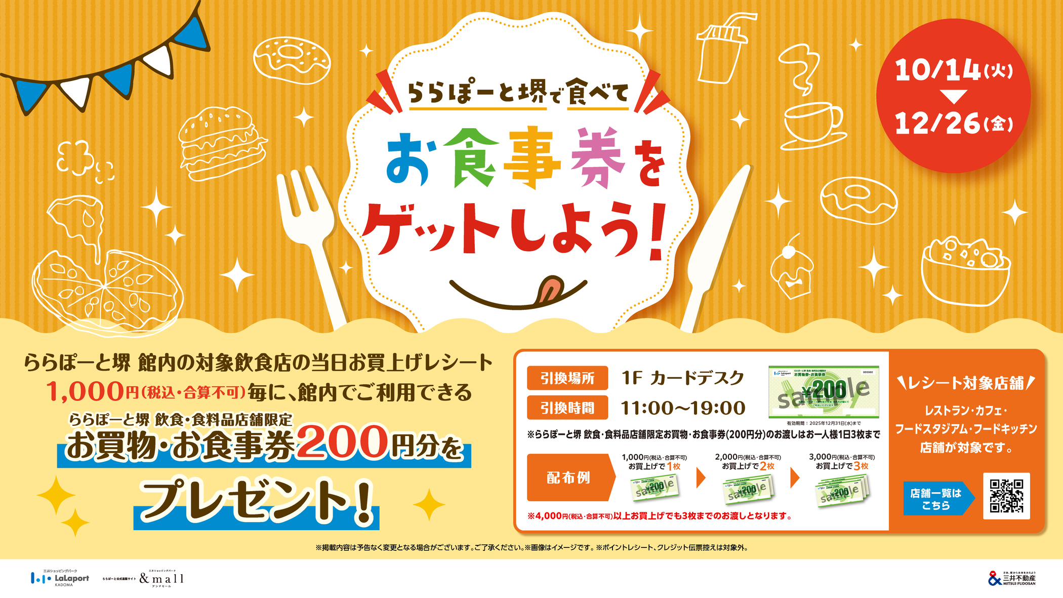 - Eat at LaLaport SAKAI and get a meal ticket!