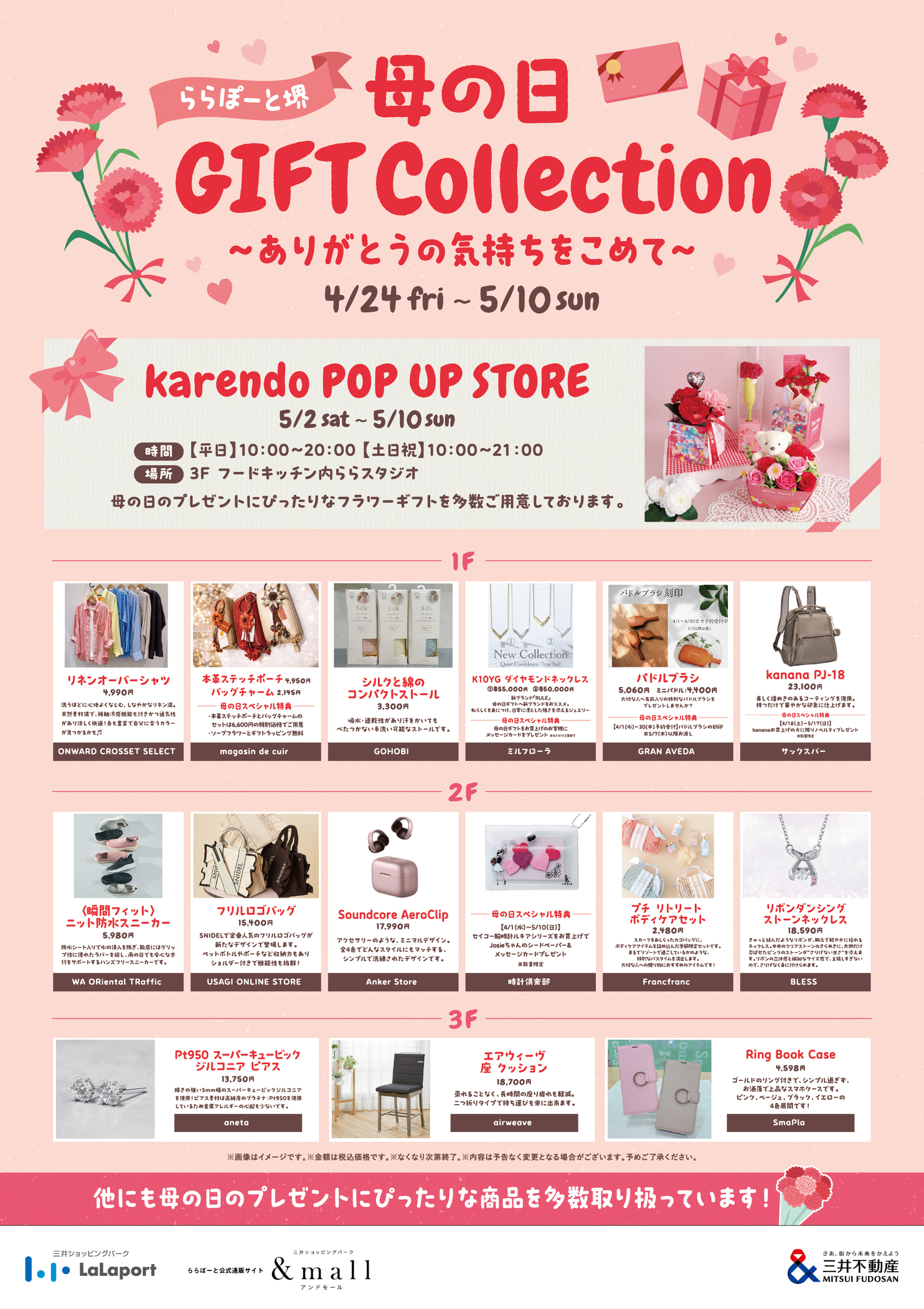 We offer a wide selection of items, including accessories, bags, miscellaneous goods, and flower gifts, so you can choose the perfect gift while thinking of the recipient. Plus, a limited-time pop-up store will be opening!