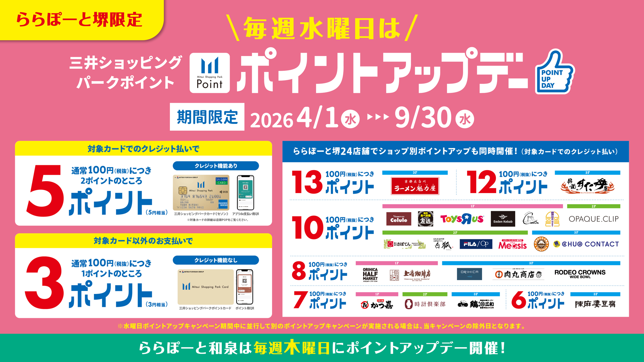 - <Exclusive to Mitsui Shopping Park Point Members> Every Wednesday is a great point increase day!