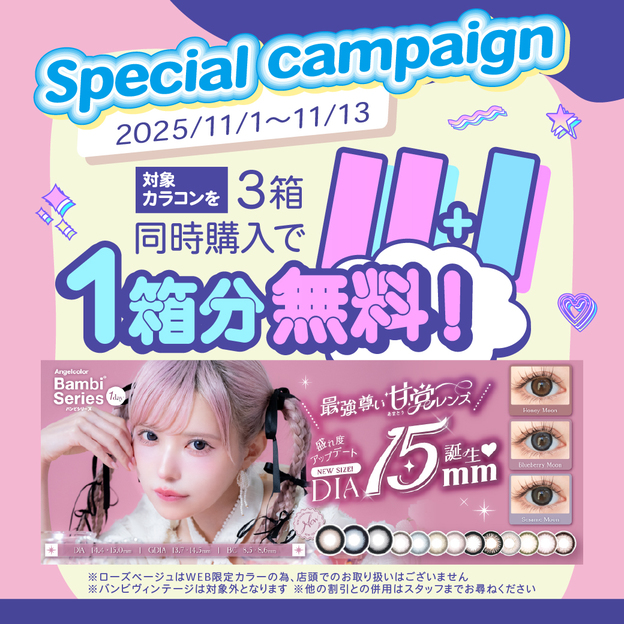 スペシャルキャンペーン! 対象カラコンを3箱同時購入で1箱無料! - Measis