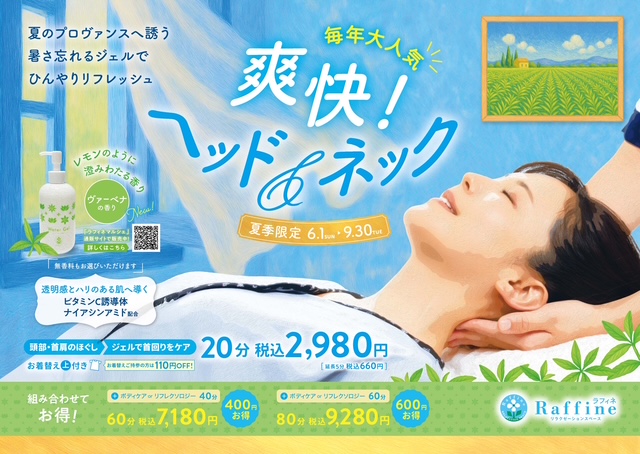 - For stiff shoulders and neck, this is it! Warming head and neck ♪ Recommended 30 minutes 4,390 yen (tax included)