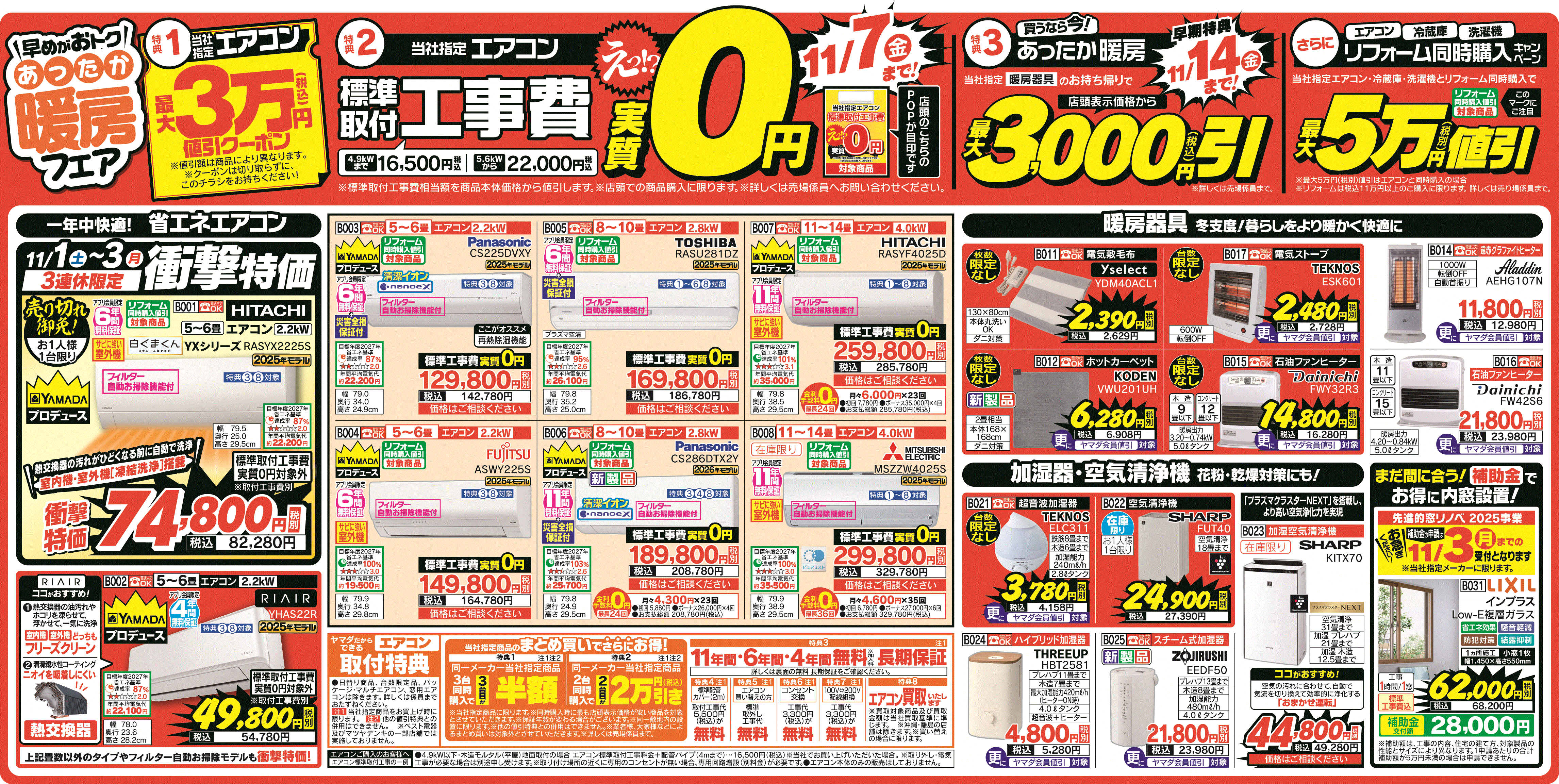☆Benefit 3☆ Buy now! Warm Heating Take home our designated heating appliance and get a discount off our listed price Up to 3,000 yen discount
