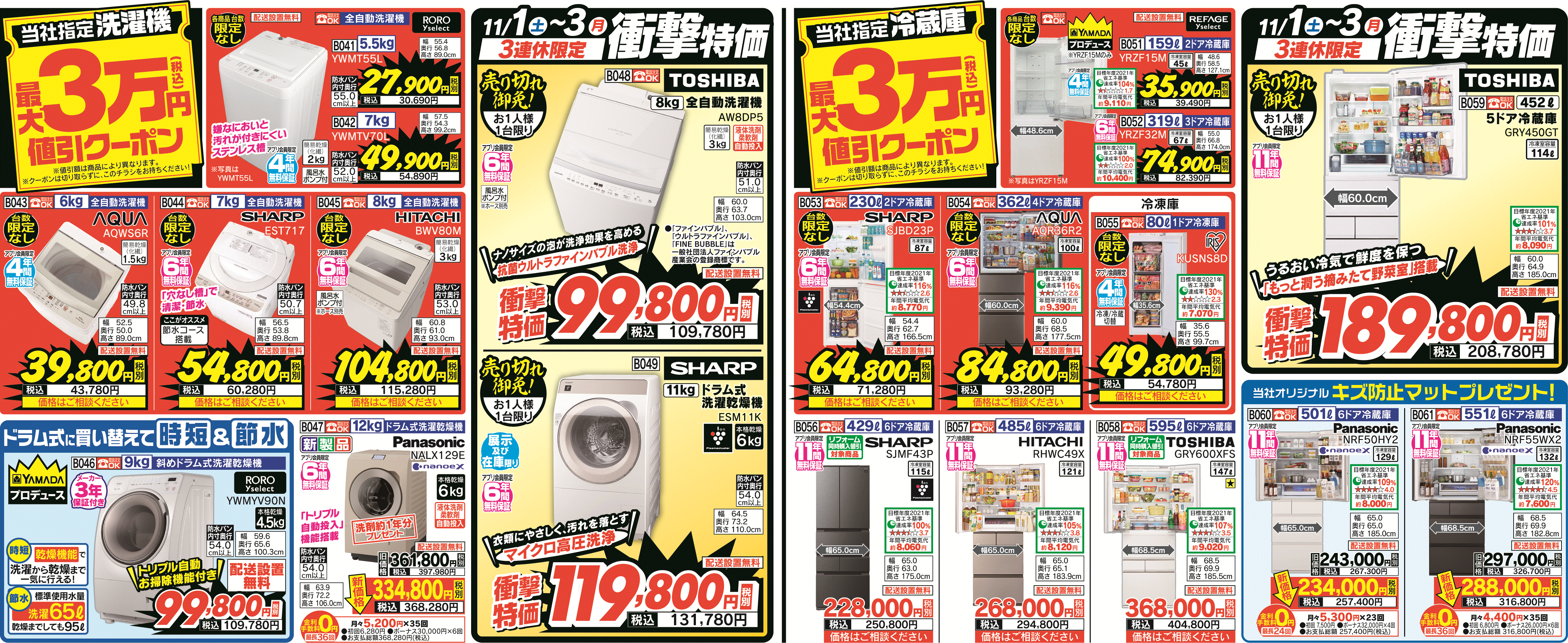☆ Yamada members only ☆ Air conditioners, washing machines, refrigerators, and TVs designated by our company Up to 30,000 yen discount coupon