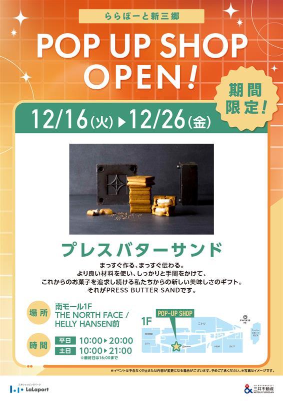 Press Butter Sandwich will be open from Tuesday, December 16th.