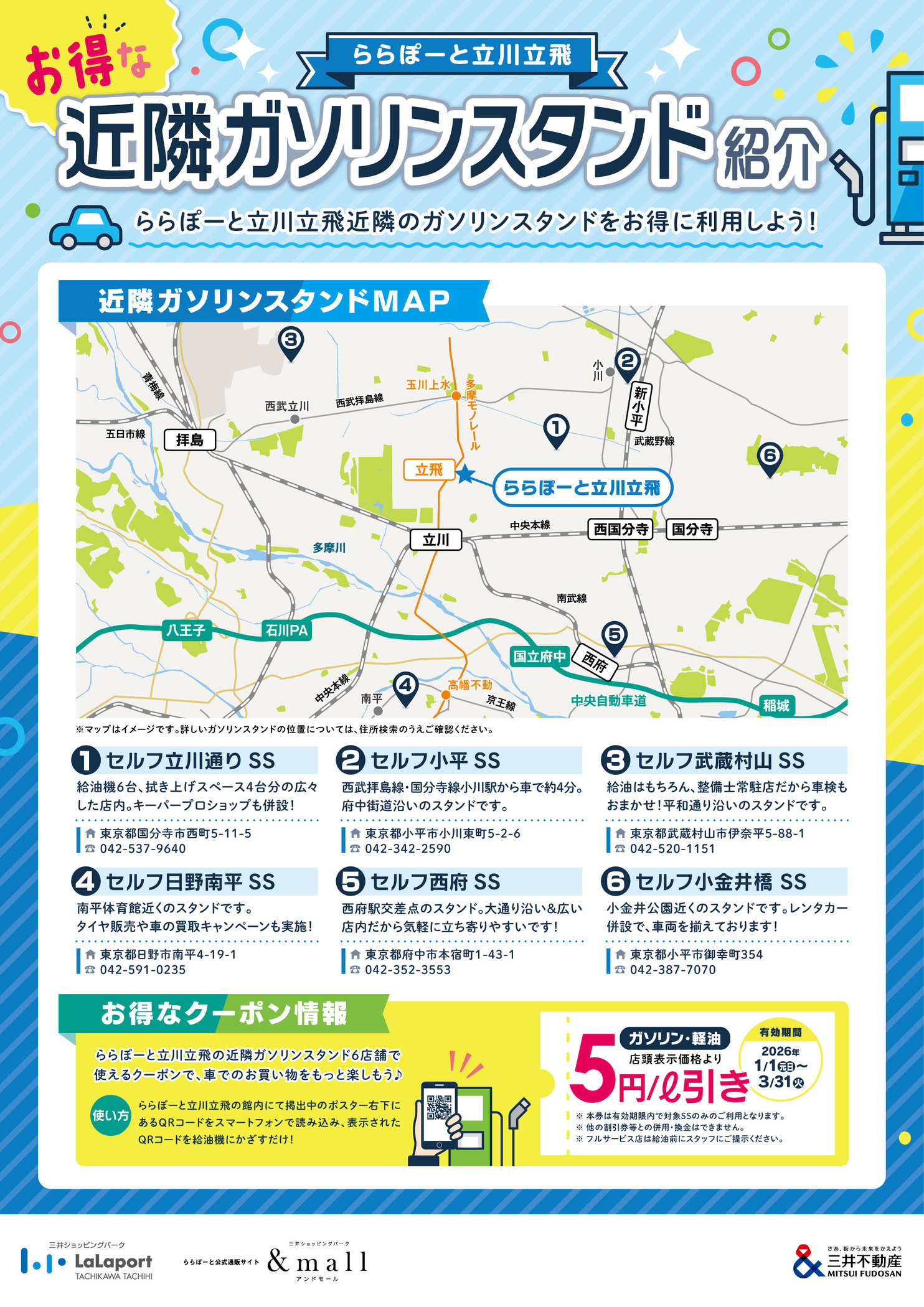 - Introducing nearby gas stations with great deals LaLaport TACHIKAWA TACHIHI