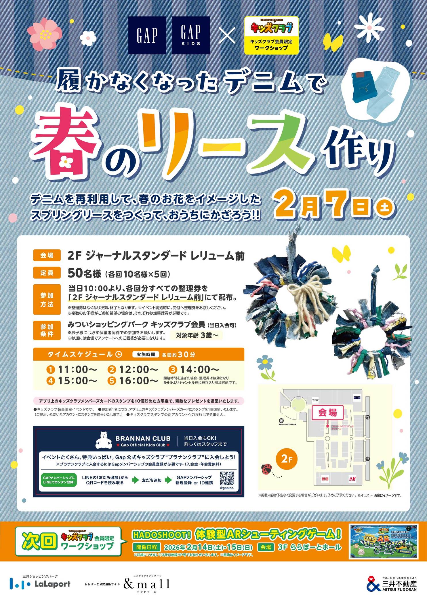 - GAP collaboration project! Kids Club members-only Shops: Make a spring wreath using old denim