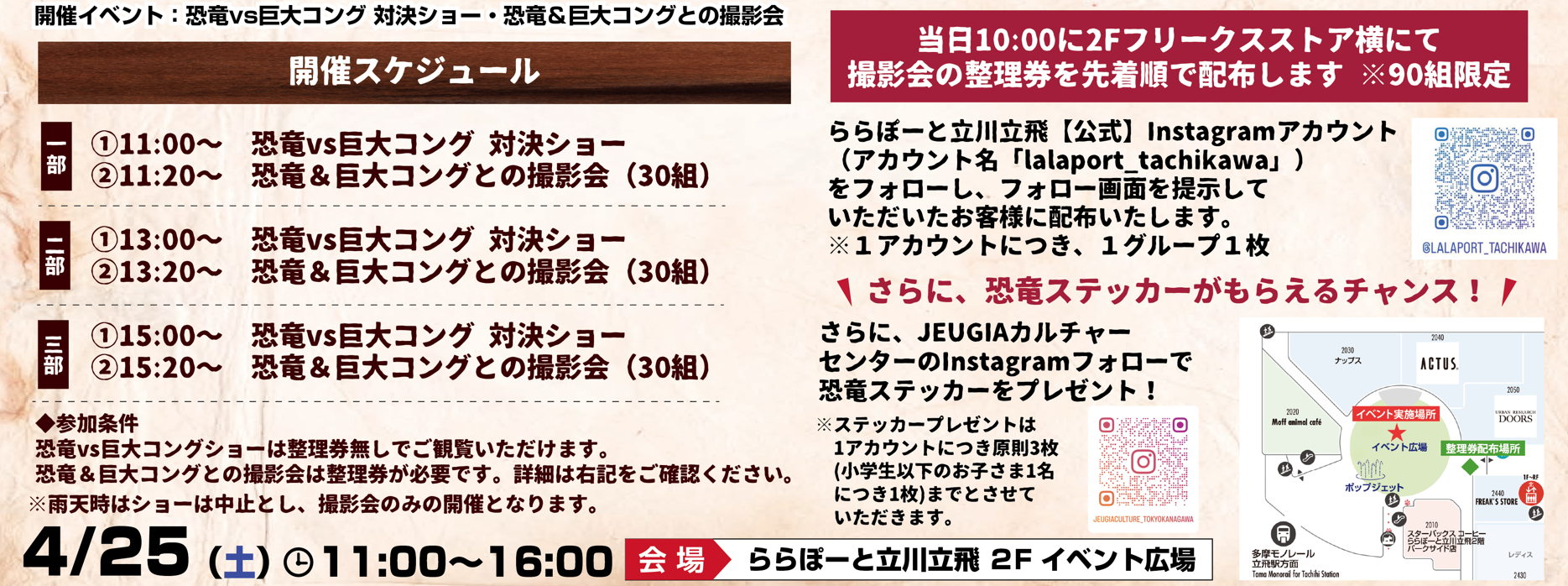 Furthermore, follow the official Instagram gram contemporary of JEUGIA culture center (Tokyo/Kanagawa) (account name: jeugiaculture_tokyokanagawa) to receive a dinosaur sticker!