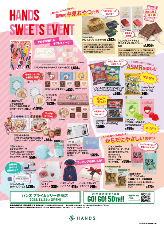 Based on the concept of "Create with your hands. Get excited with your hands," we stock a wide range of products that will make you feel "fun and exciting," "fresh and surprising," and "convenient," including cosmetics and skincare products, stationery, kitchenware, bags, and miscellaneous goods.