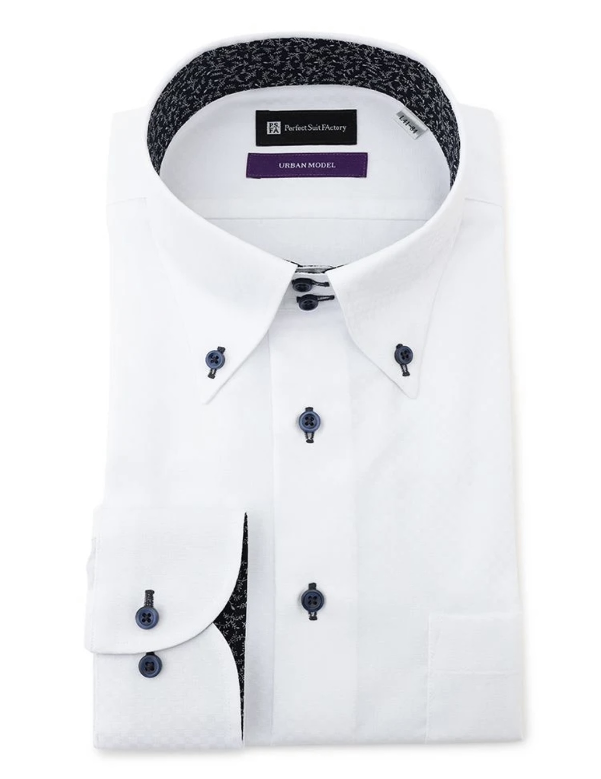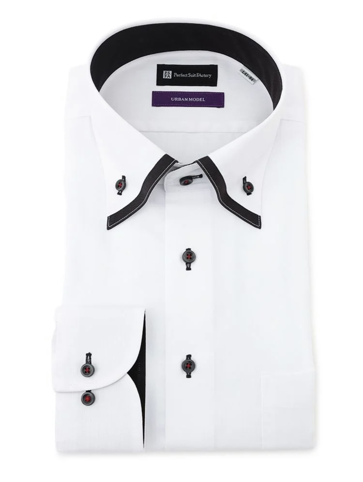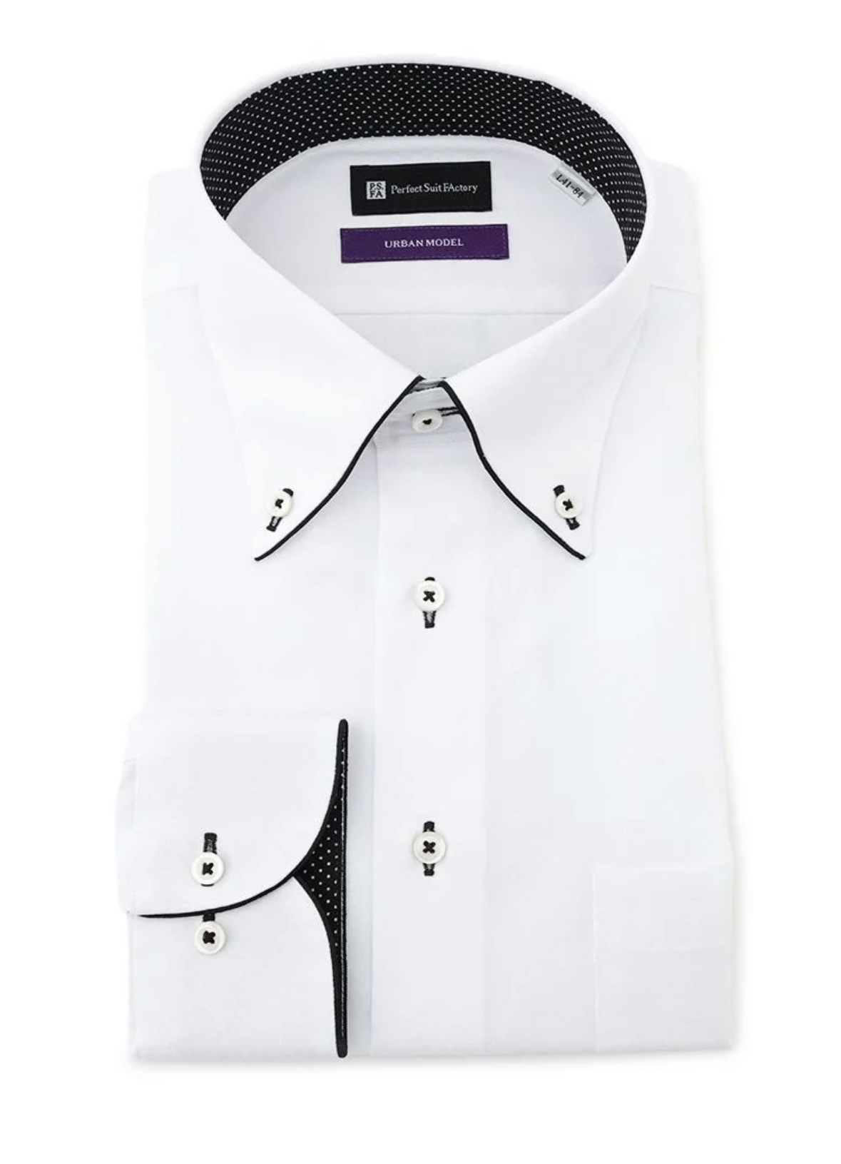 This long-sleeved shirt has an ingenious design, with the collar and cuff lining made from different materials.