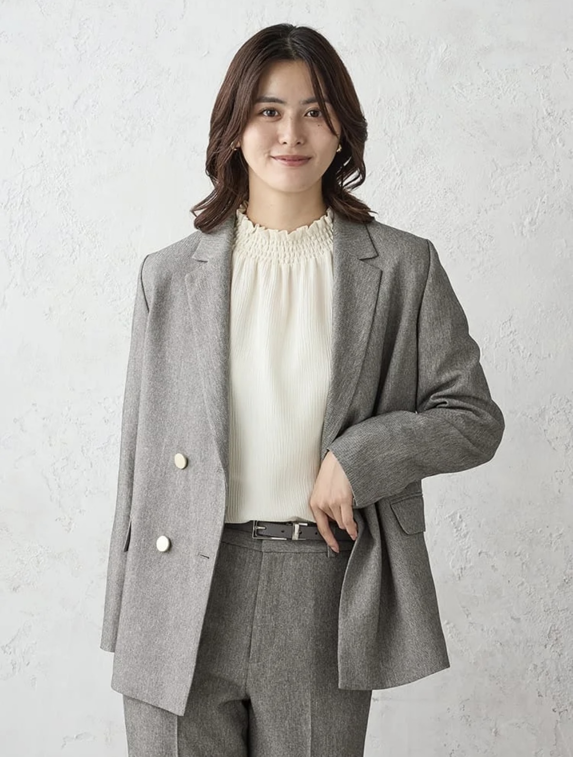 It goes well with high-neck items, and we recommend pairing it with pants made of the same material to create a set.